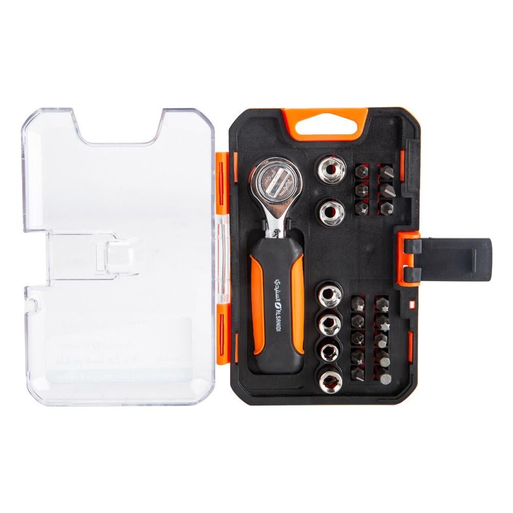 احصل على طقم عدة متكامل وعملي مع طقم مفاتيح متعددة الاستخدام موديل SNTO-0136 من السنيدي، الذي يحتوي على 23 قطعة متنوعة في علبة بلاستيك برتقالية لتحظى بكل ما تحتاجه من أدوات في مكان واحد.