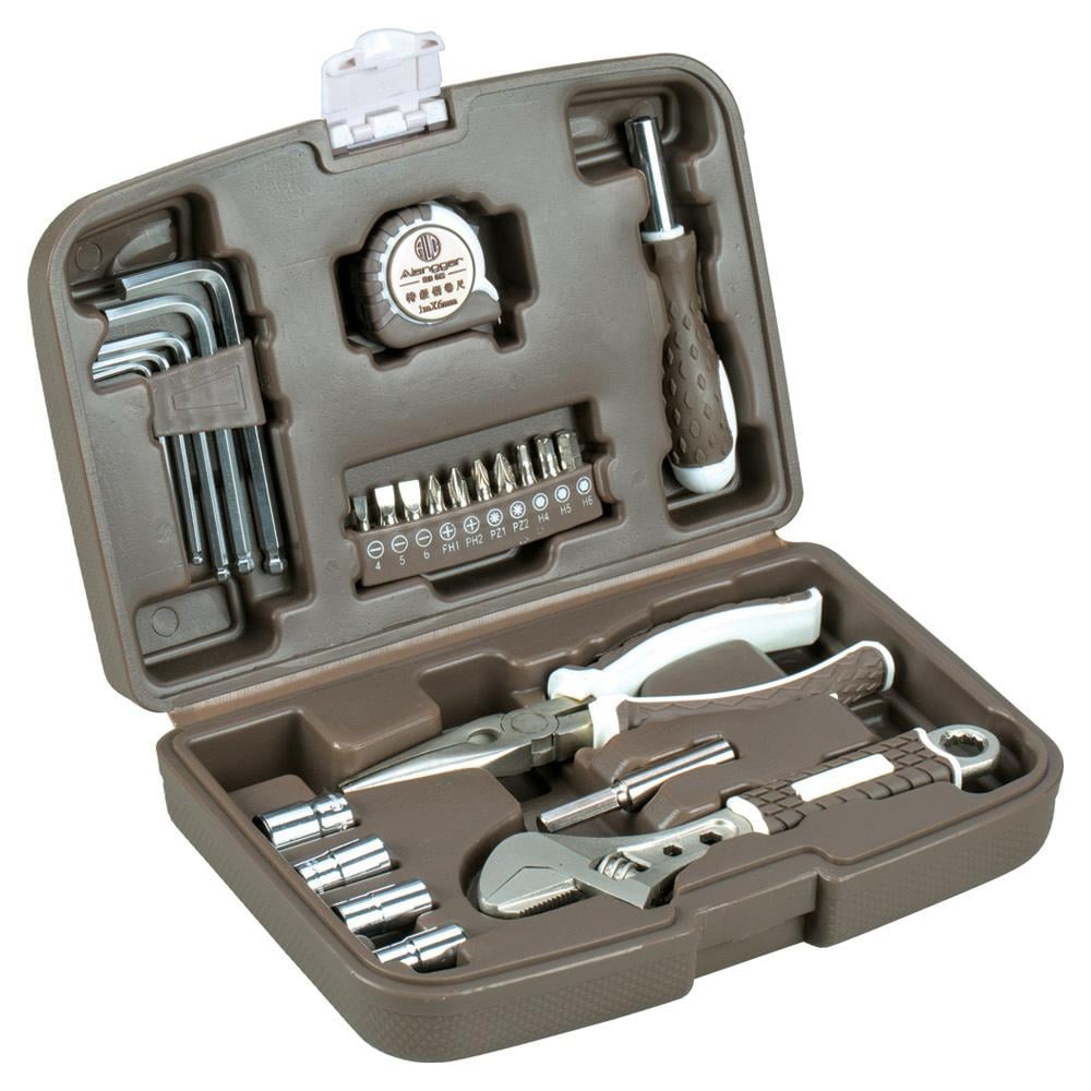 طقم عدة مفاتيح عدد 24 قطعة متنوعة بصندوق بلاستيك بني من السنيدي هو الخيار المثالي لكل من يحتاج إلى طقم أدوات شامل ودقيق يفي بجميع احتياجات الإصلاح والصيانة اليومية!