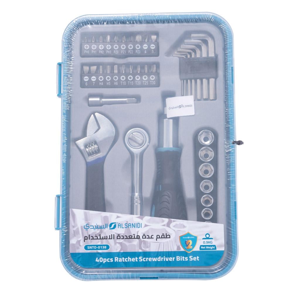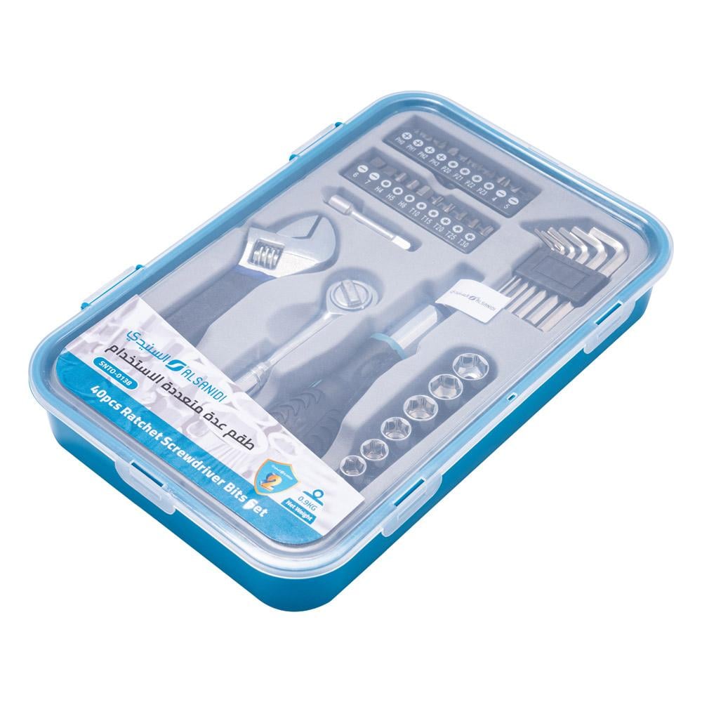 طقم عدة مفاتيح متعددة الاستخدام 40 قطعة بعلبة بلاستيك تركواز من السنيدي - الحل المثالي لجميع احتياجات الإصلاح!