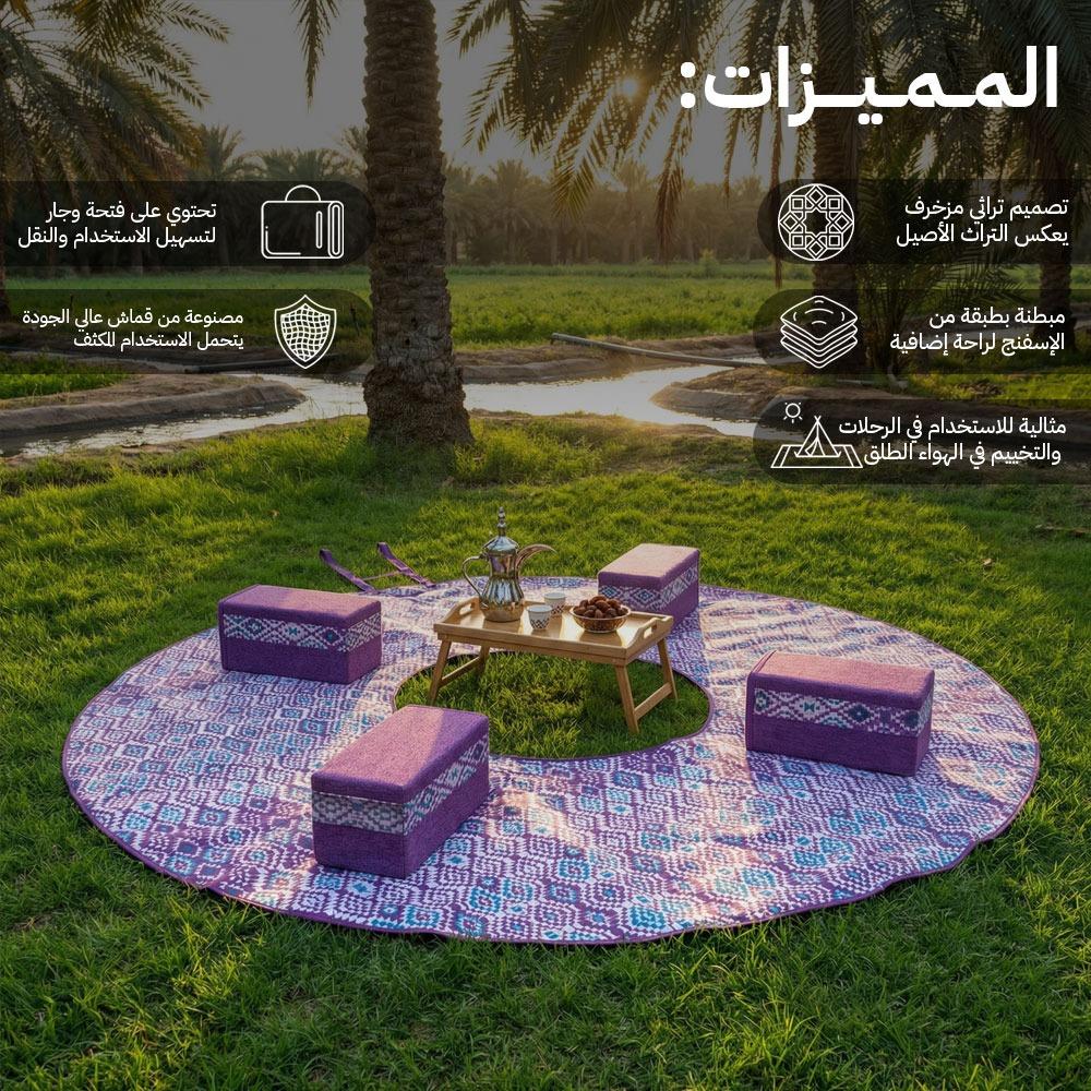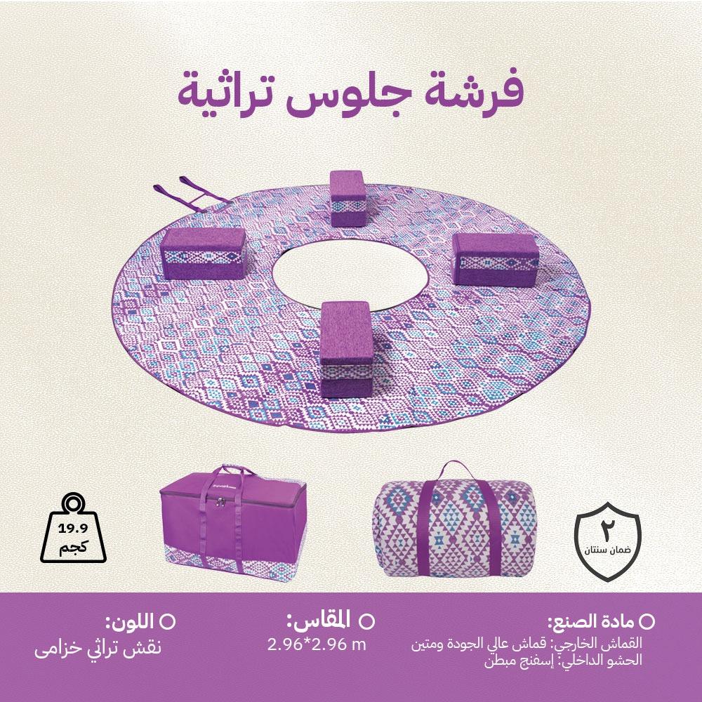 فرشة جلوس تراثية 3×3 م، سهلة النقل بفضل فتحة الوجار،ضمان سنتان
