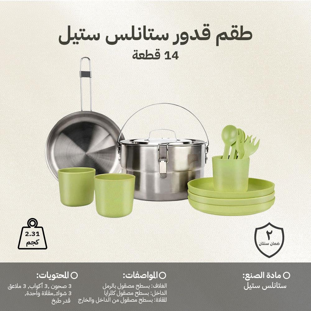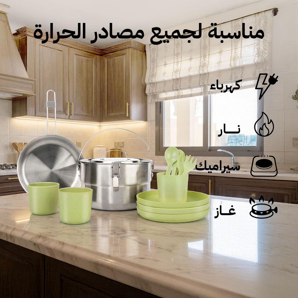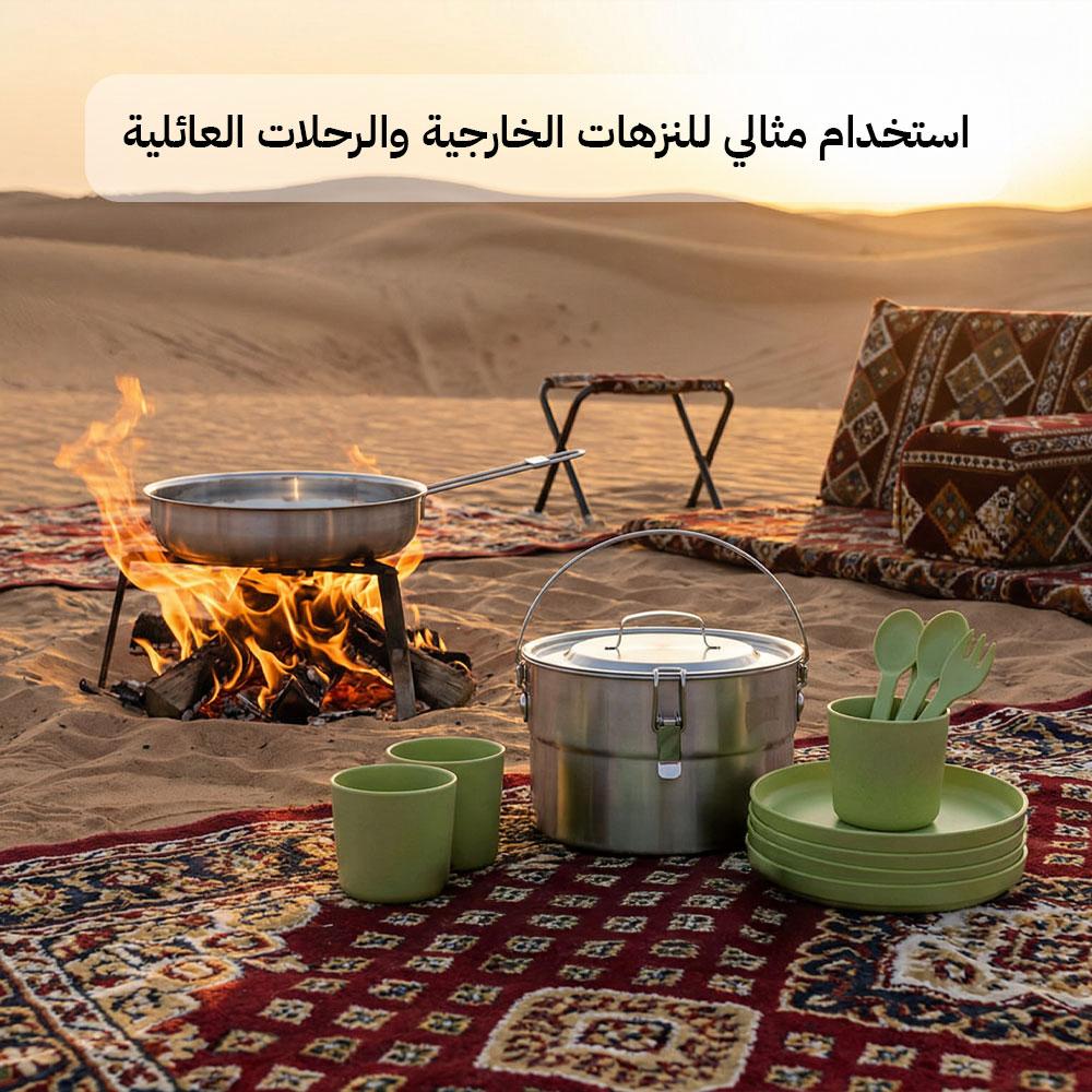 طقم طهي متكامل عالي الجودة صديق للبيئة وصحي، مصمم لتلبية احتياجات التخييم والرحلات الخارجية.