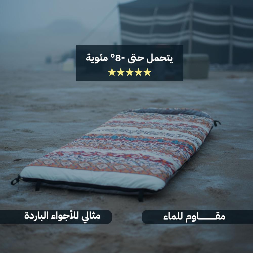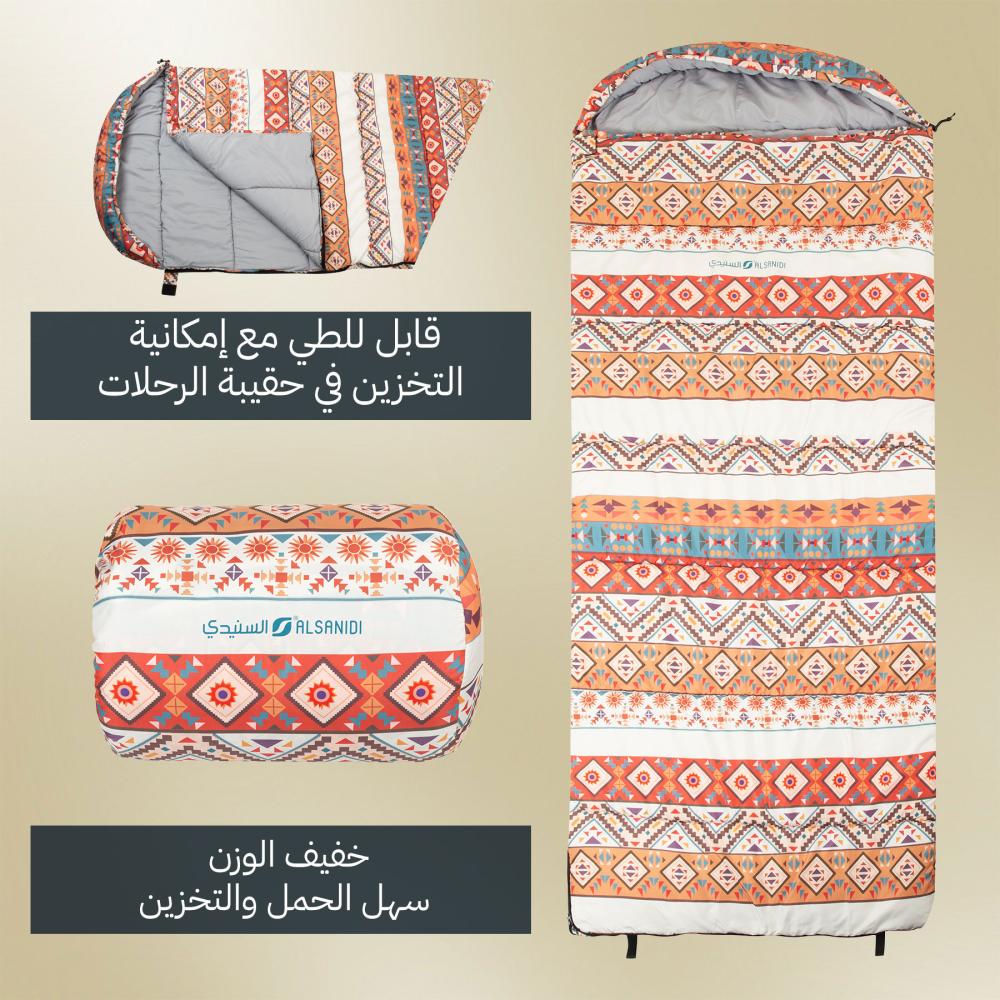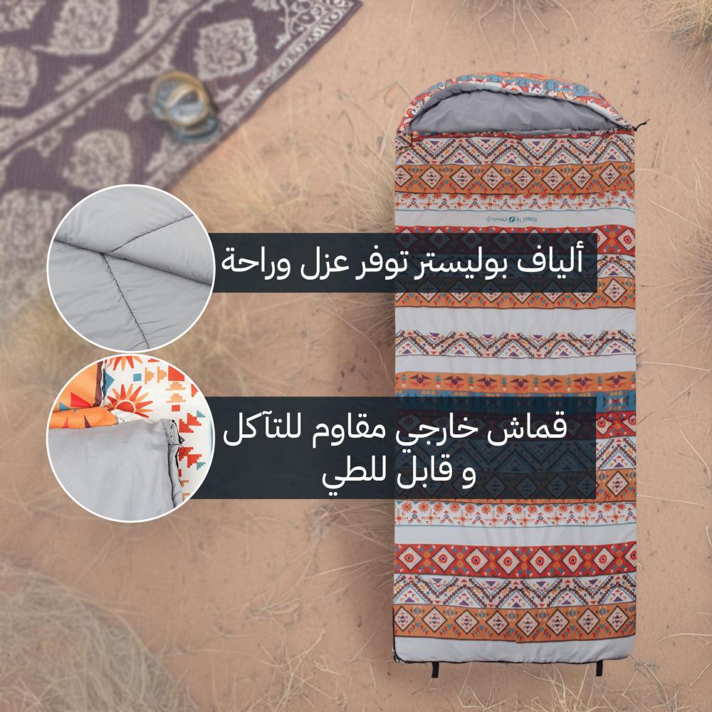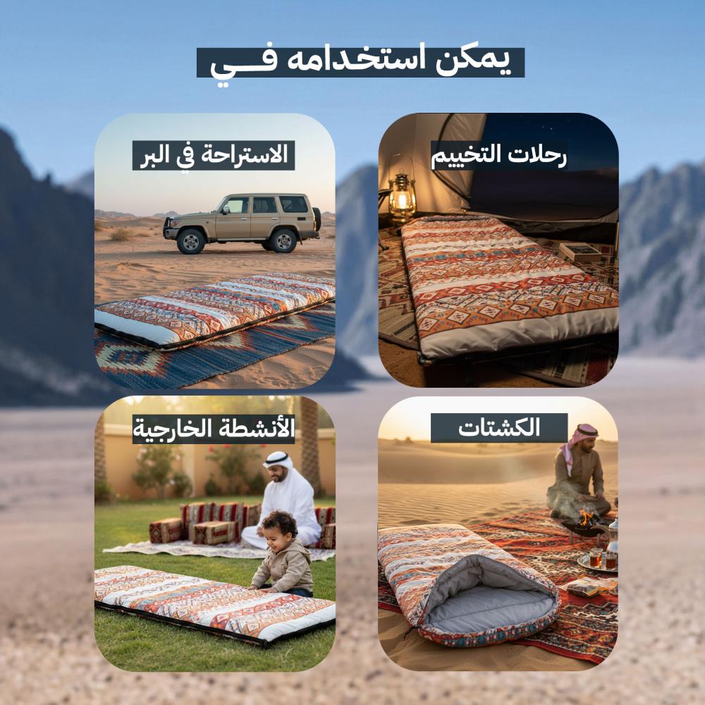 احصل على نوم هادئ ومريح في رحلاتك البرية مع فراش نوم العائلة من السنيدي، بتصميم عملي وخامة منقوشة تضيف لمسة جمالية إلى تجربتك في الهواء الطلق.