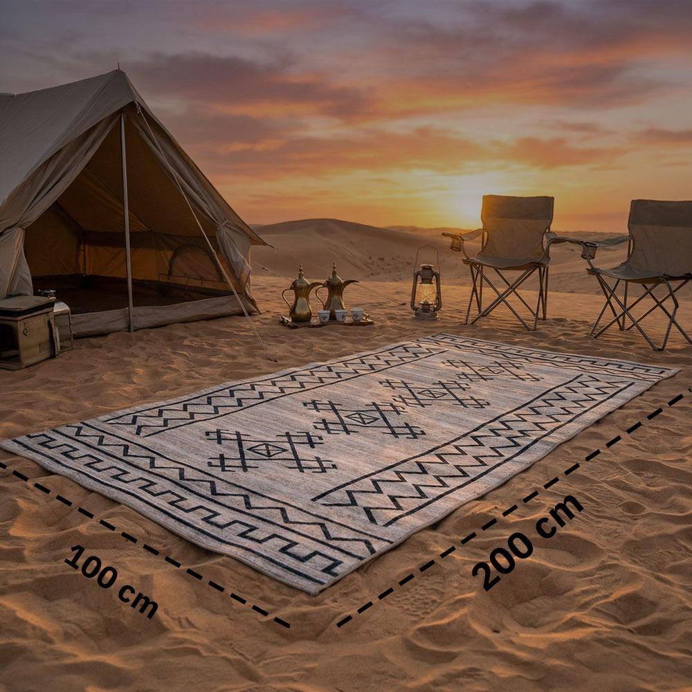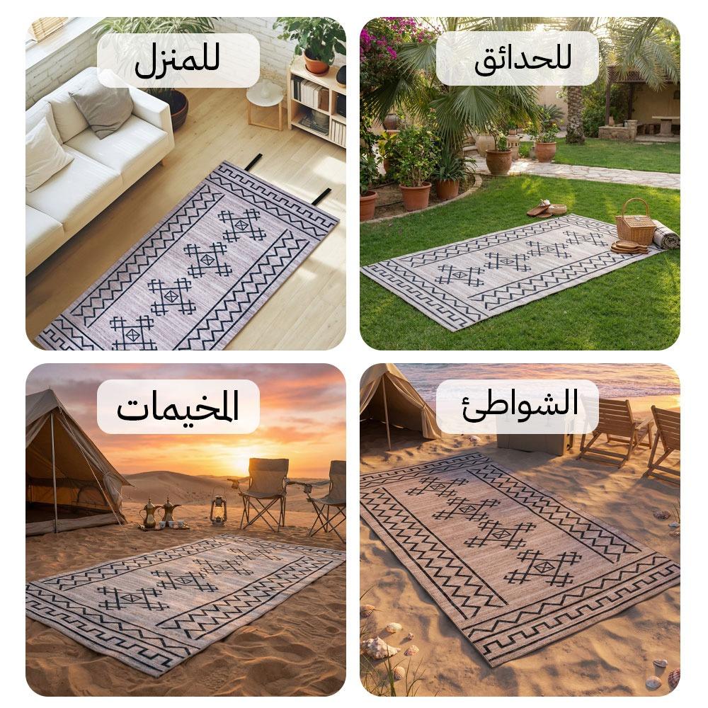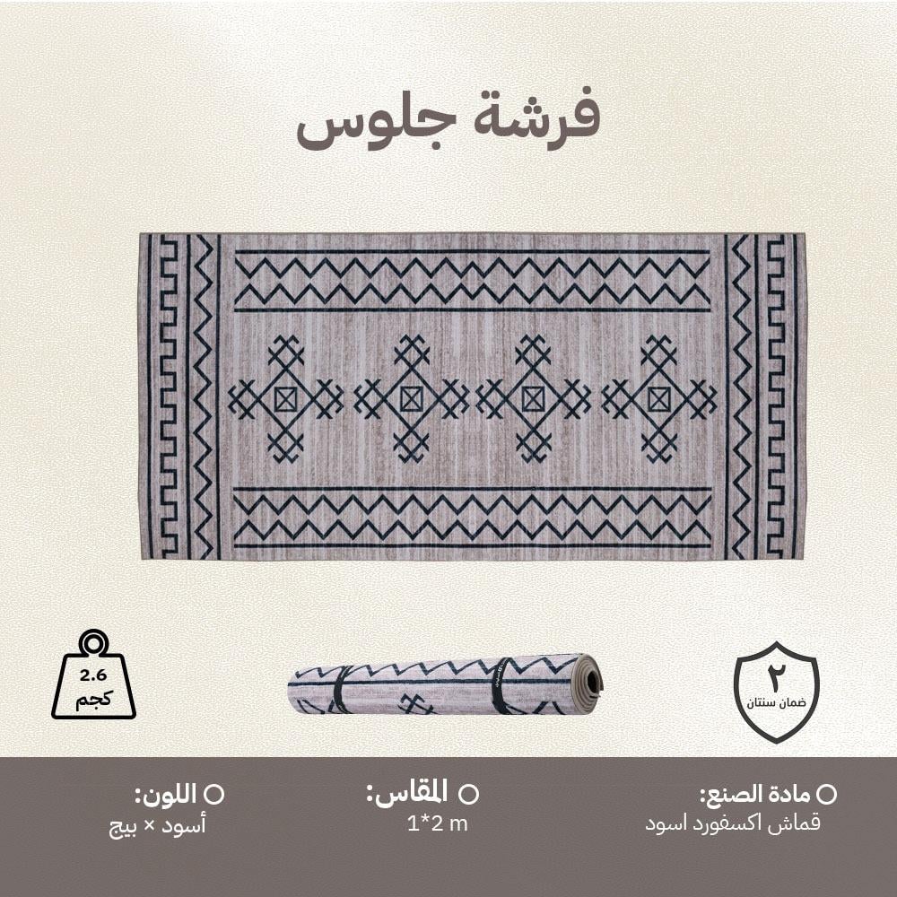 فرشة ذات تصميم أنيق باللونين الأسود والبيج تجمع بين المتانة وخفة الوزن، لتكون رفيقك المثالي في الرحلات والنزهات الخارجية.