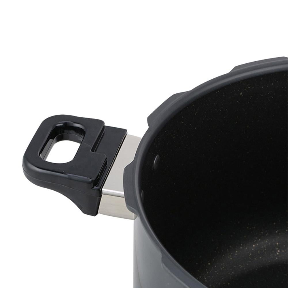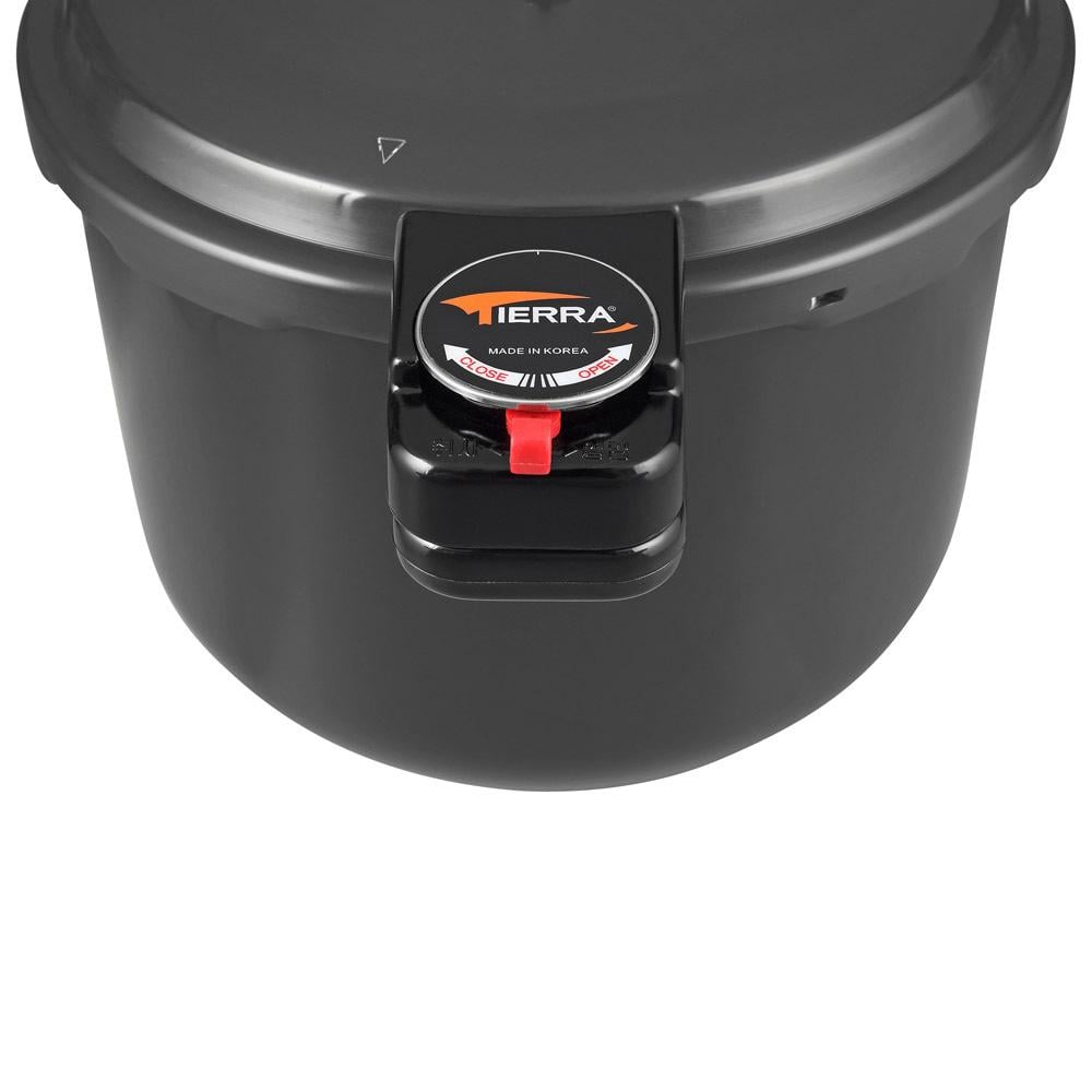 اختبر مستوى جديد من الطهي السريع والآمن مع قدر الضغط الكوري من TIERRA، المصنوع من ألمنيوم عالي الجودة بطبقة سيراميك فاخرة تضمن توزيعًا مثاليًا للحرارة وطعامًا مطهوًا بالتساوي في وقت أقل. تصميمه الأنيق باللون الأسود يجمع بين المتانة والأداء الاحترافي ليناسب كل مطبخ عصري.