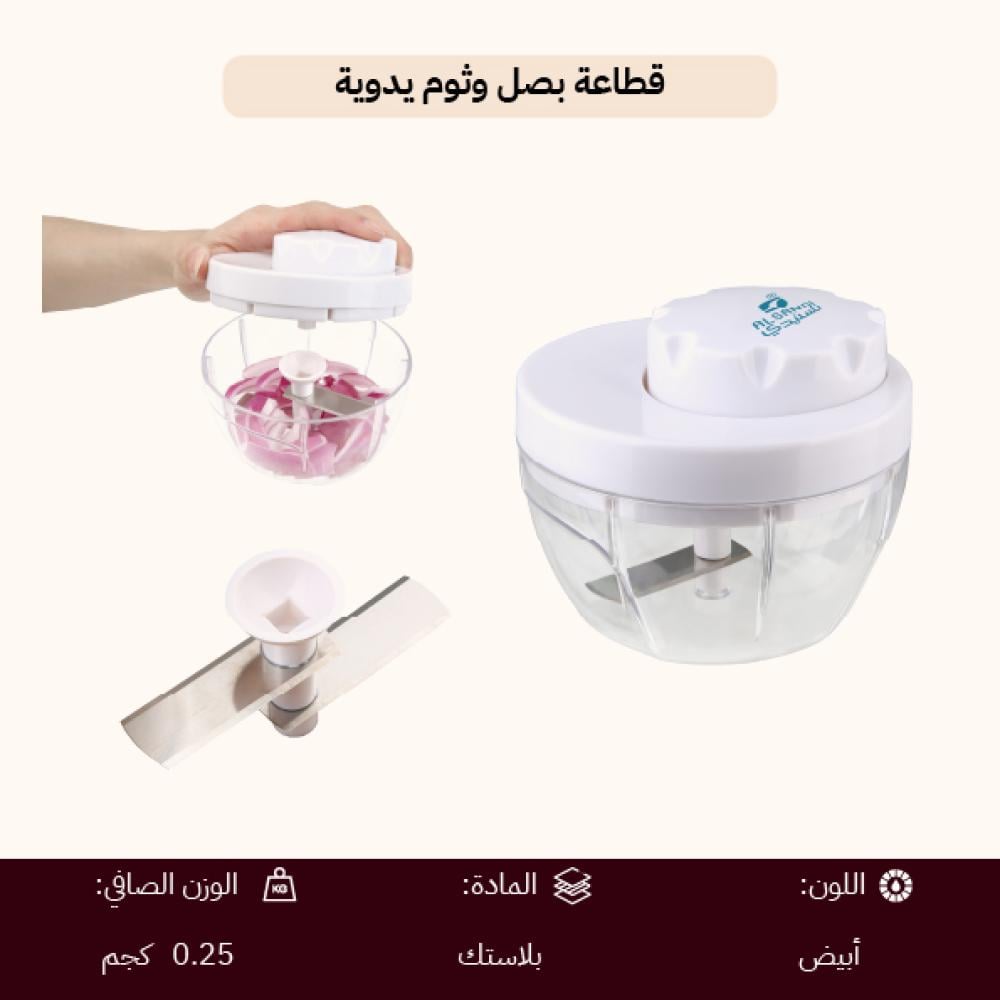 قطاعة بصل وثوم يدوية - تقطيع سريع وسهل، تنظيف سريع، توفير مساحة في المطبخ،ضمان سنتان