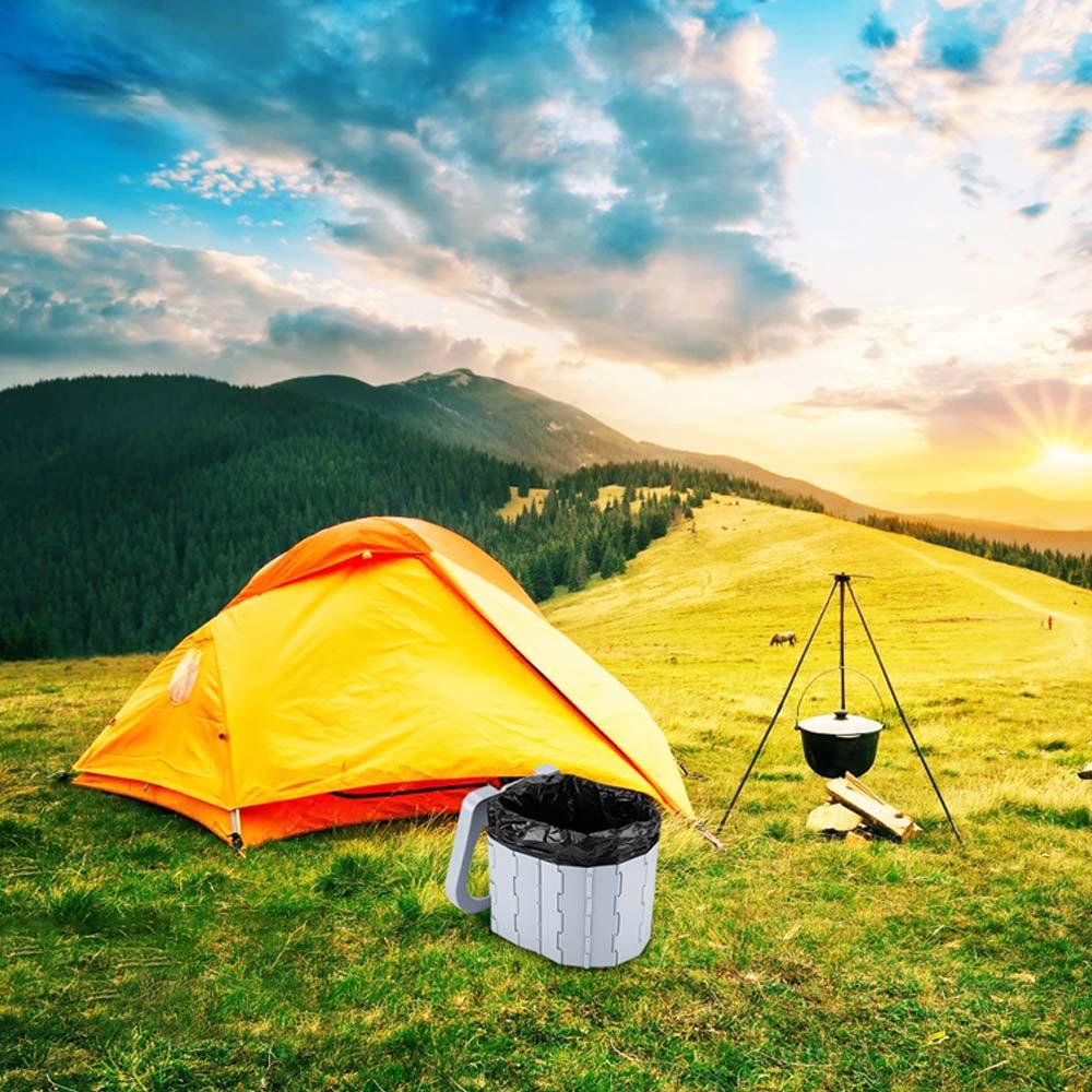 3. متعدد الاستخدامات: يستخدم كمرحاض محمول أثناء التخييم أو السفر، كدلو تخزين أو تنقل، كمقعد متنقل، وكذلك كسلة مهملات.