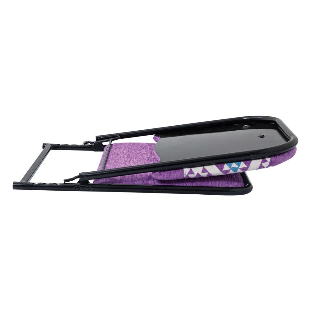 كرسي رحلات للتخييم والنزهة موديل HT012-NP من السنيدي، يجمع بين المتانة والراحة مع تصميم أنيق من قماش شانيل بنقش تراثي خزامى وهيكل أنبوب معدني قوي، ليمنحك تجربة جلوس مريحة وعملية في أي مكان.