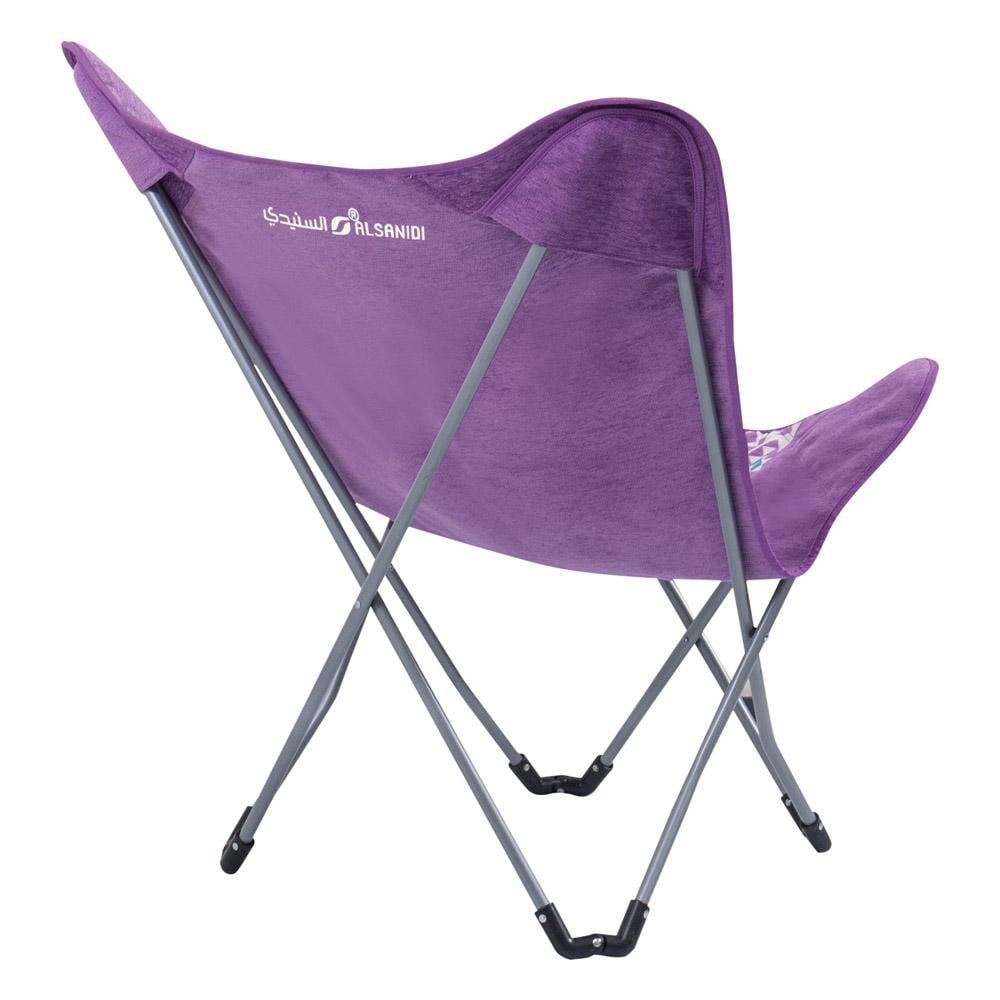 كرسي تخييم قابل للطي بأرجل الألمنيوم وقماش شانيل بنقش تراثي خزامى من السنيدي SN10969-NP يقدم الراحة والتصميم التراثي الفريد لعشاق التخييم والسفر.
