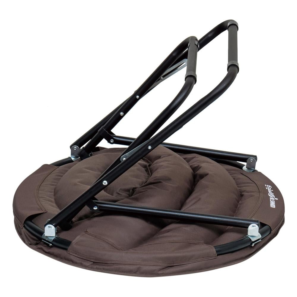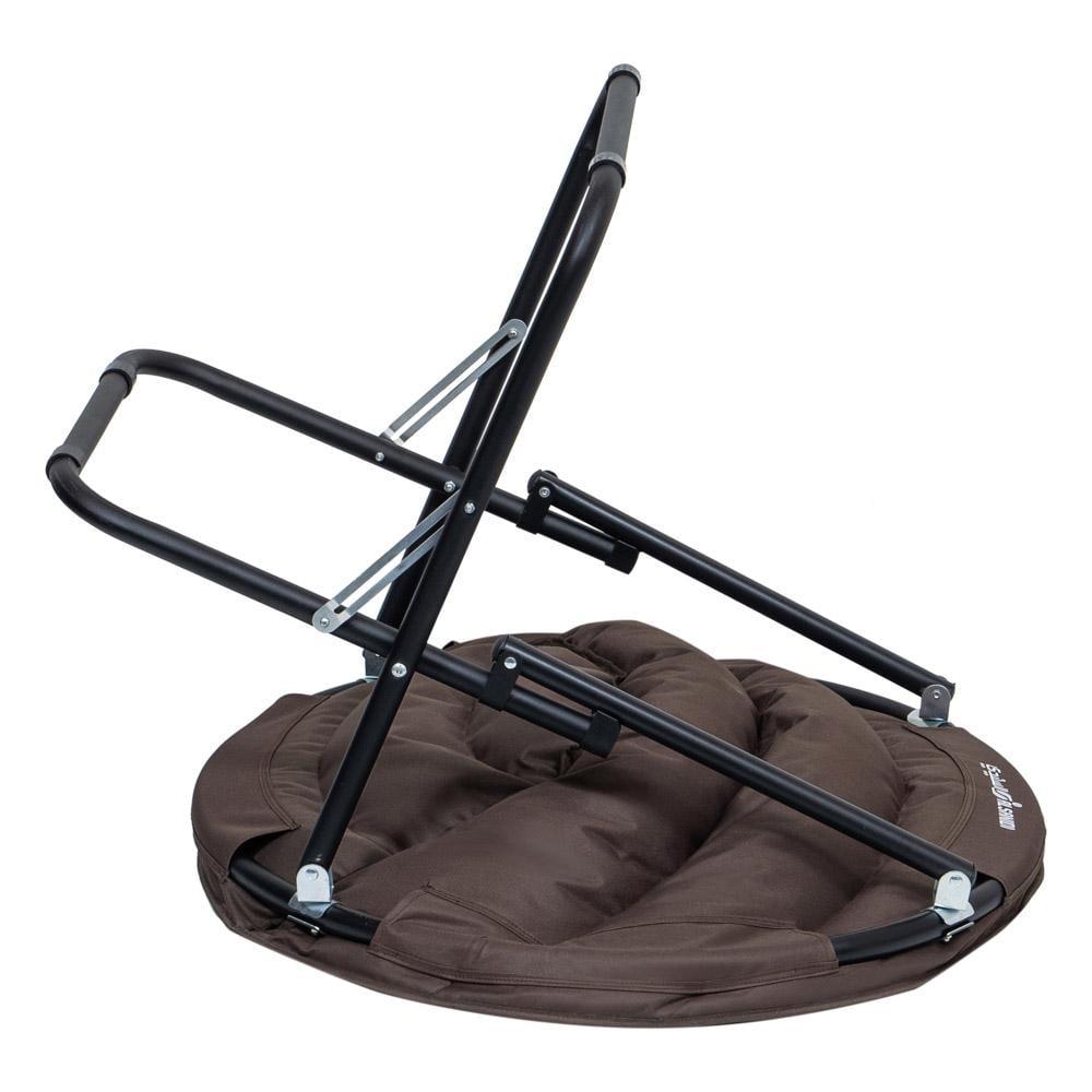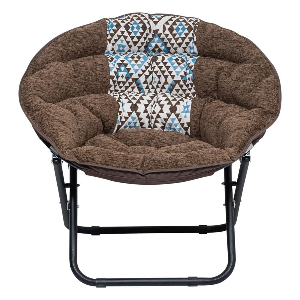 كرسي تخييم قابل للطي مع مقعد دائري مريح بتصميم أنيق وقماش شانيل نقش تراثي كوفي، مثالي للاستخدام في الرحلات والمخيمات والمكاتب.
