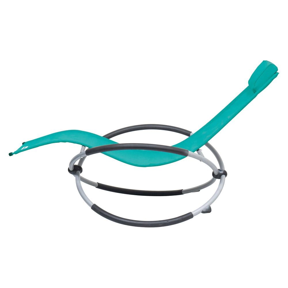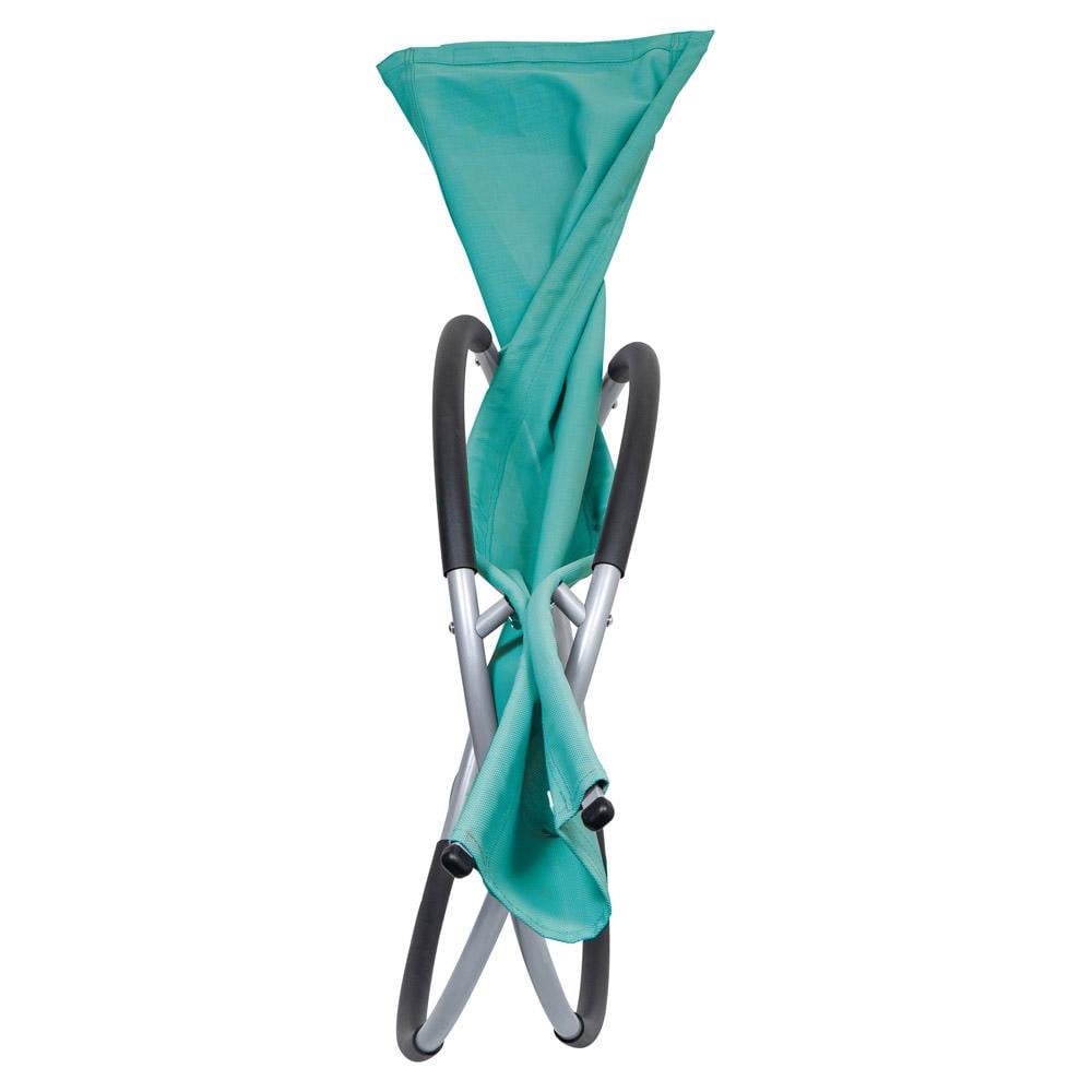 كرسي هزاز قابل للطي من إطار ستيل ومطاط بتصميم مريح وألوان جذابة لقماش تكستلين الأزرق.