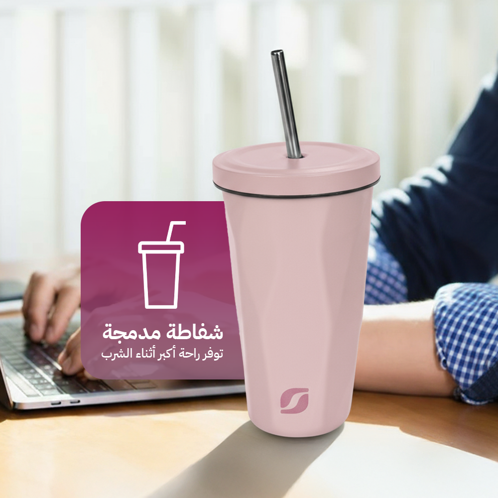 استمتع بمشروباتك في أي وقت مع كوب القهوة ستانلس ستيل، بلون وردي جذاب ولمسة عصرية. يتميز بقدرته العالية على الحفاظ على حرارة أو برودة المشروبات لفترة طويلة، مع تصميم عملي مرفق بشفاطة لسهولة الشرب والتنظيف، ليكون رفيقك المثالي داخل المنزل وخارجه.