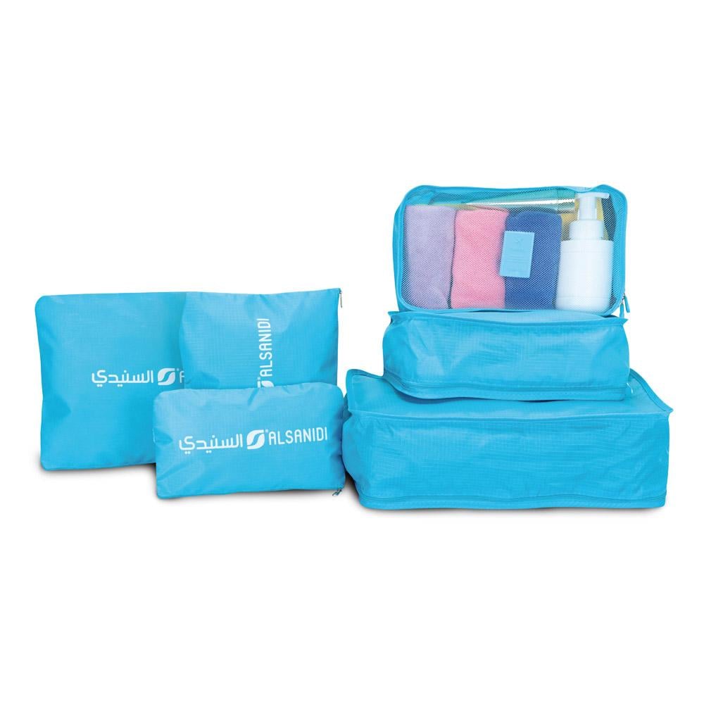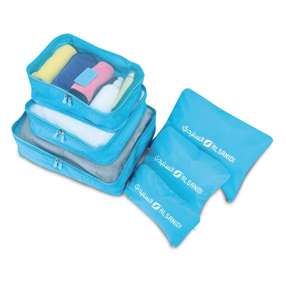 مجموعة منظم شنط السفر الأزرق من السنيدي – الحل الأمثل لتنظيم أغراضك وحماية ملابسك أثناء السفر بكل سهولة وراحة 🎒✨