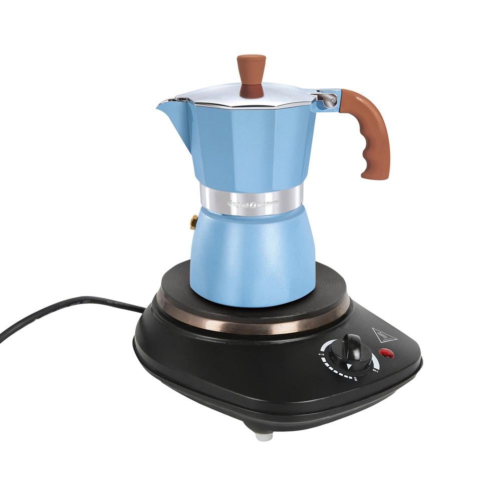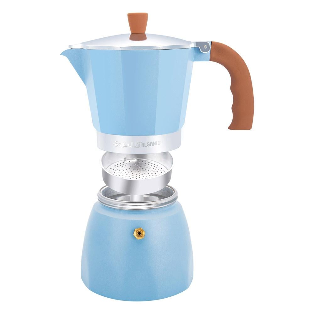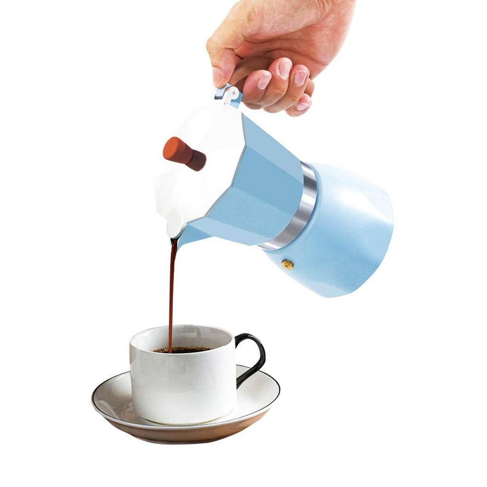 تمتع بتحضير قهوة إسبريسو غنية ونكهة مميزة مع محضرة القهوة المصنوعة من الألومنيوم عالية الجودة، ذات التصميم العصري واللون السماوي الجذاب.