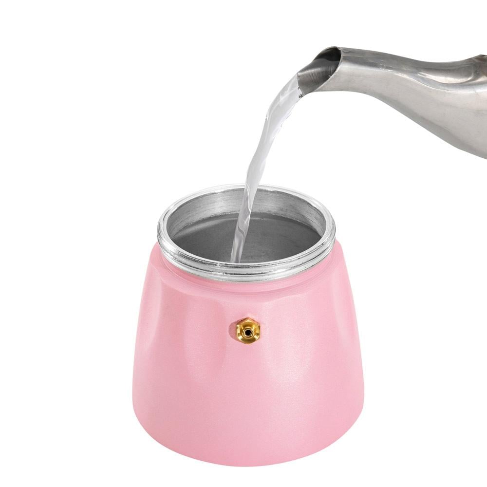 استمتع بتحضير قهوة إسبريسو غنية ولذيذة مع هذه المحضرة الأنيقة المصنوعة من الألومنيوم، ذات التصميم العصري واللون الوردي الجذاب.