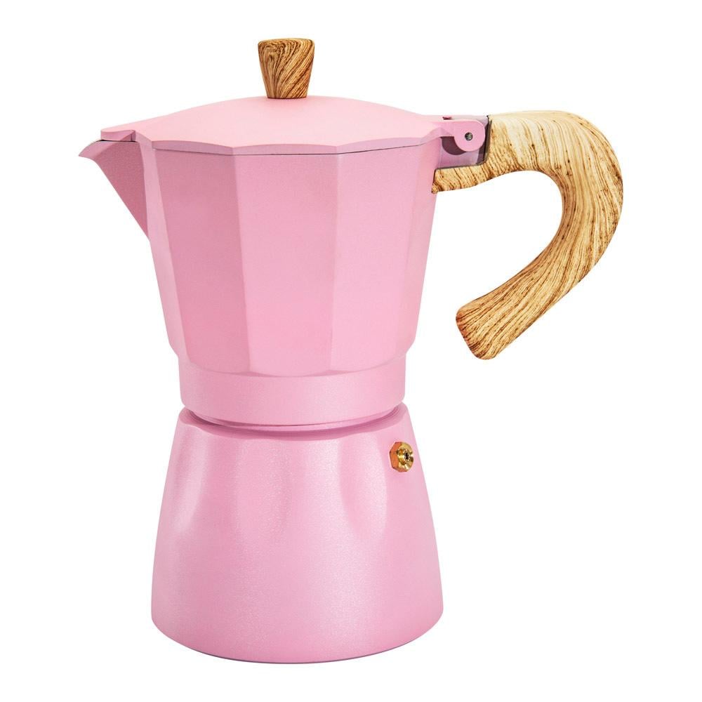 محضرة القهوة الإسبريسو بمقبض فيبر جانبي – اللون مطلي وردي