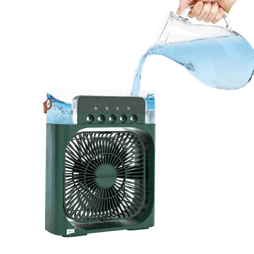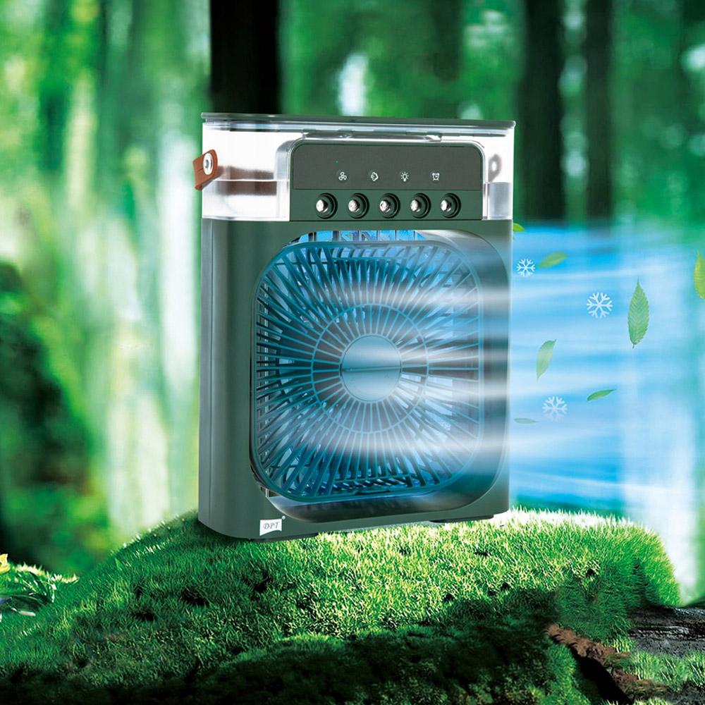 ما يحتاج تكرف من الحر وتدور مكيف مركزي… هذي مروحة تبريد ذكية تعطيك هواء بارد ومنعش مع رذاذ ماء، صغيرة وسهلة التنقل، وتخلي الجو أخف وأريح في البيت أو المكتب.