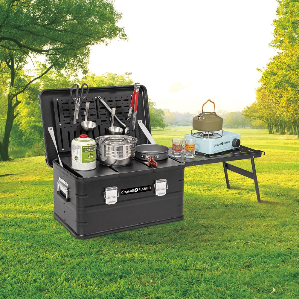 احصل على تجربة طهي متنقلة واحترافية مع مطبخ التخييم المتنقل موديل SNC-0460 من السنيدي، المصمم من سبائك الألومنيوم عالية الجودة لضمان القوة والصلابة في الرحلات البرية.