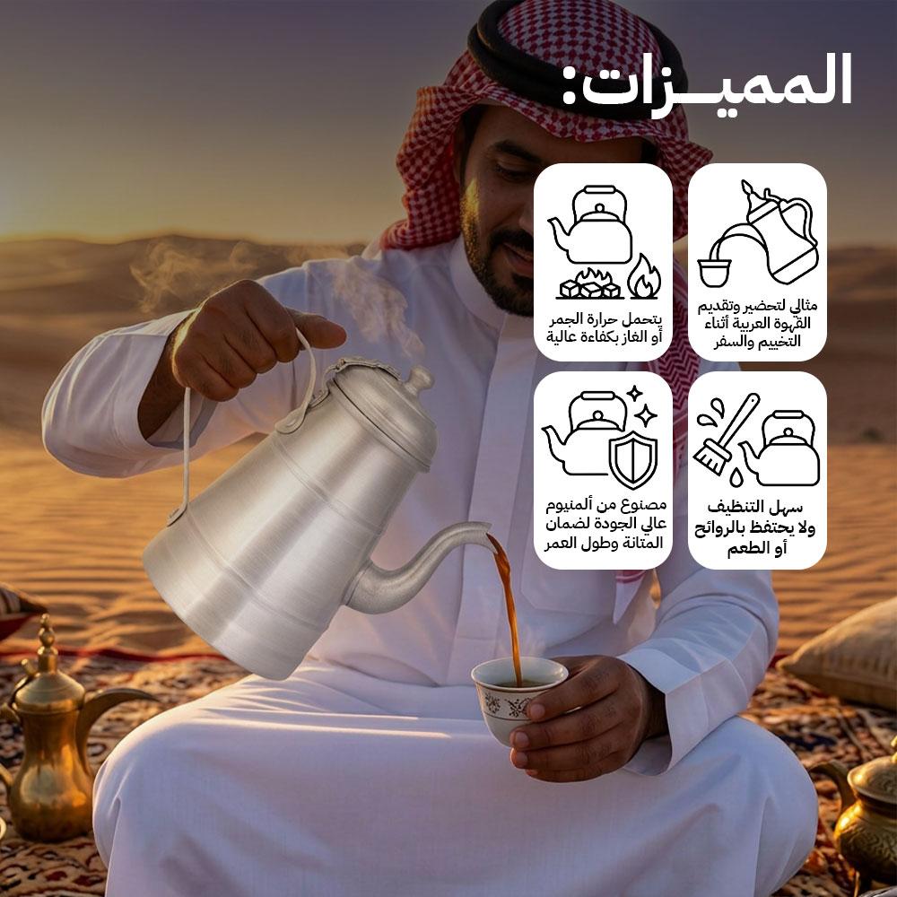 مفواح قهوة مطور ألمنيوم تصميم حديث وعملي لتحضير القهوة العربية بسعة كبيرة وجودة عالية، مثالي لجلسات البر والعزبات.