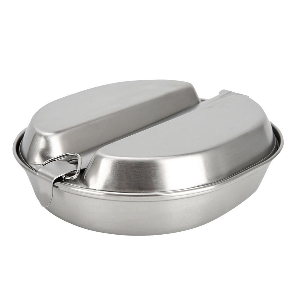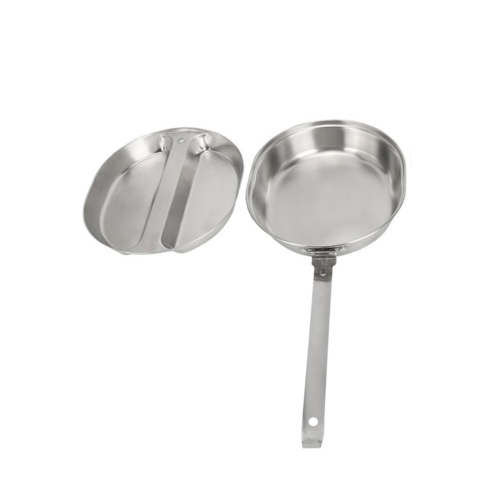 مقلاة طبخ ستانلس ستيل بيد مصفحة مع صحن تقديم 2 خانة بيضاوية مقاس 17.2 × 21 سم فضي مع جراب - أداة طهي أنيقة وعملية مصنوعة من الستانلس ستيل المتين، مزودة بيد مصفحة وصحن تقديم بخانتين، بالإضافة إلى جراب لحماية التخزين والنقل 🔥🍳🍽️.