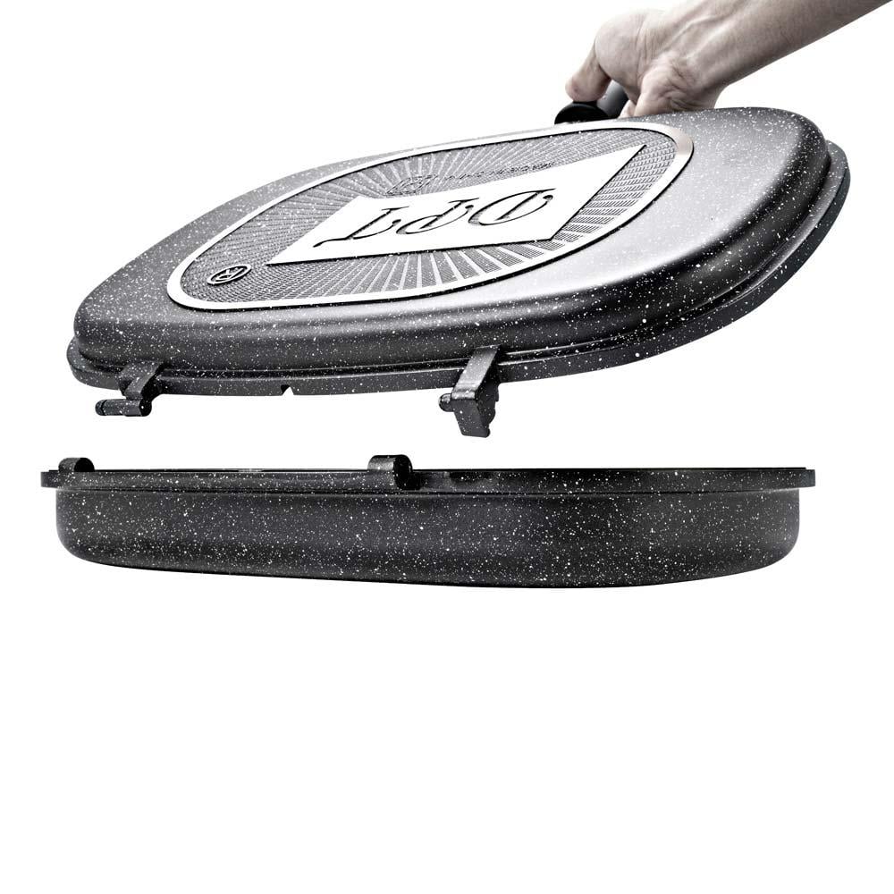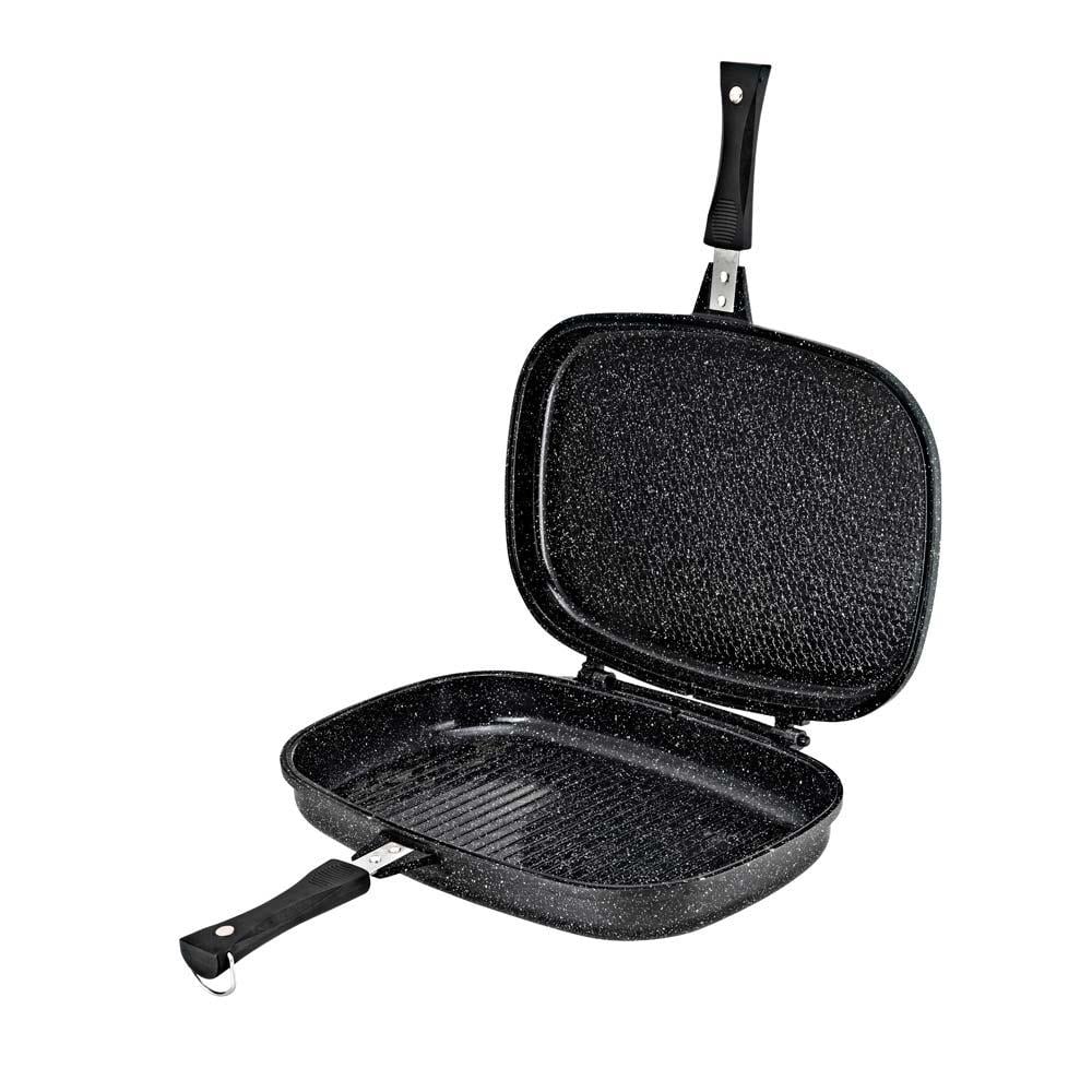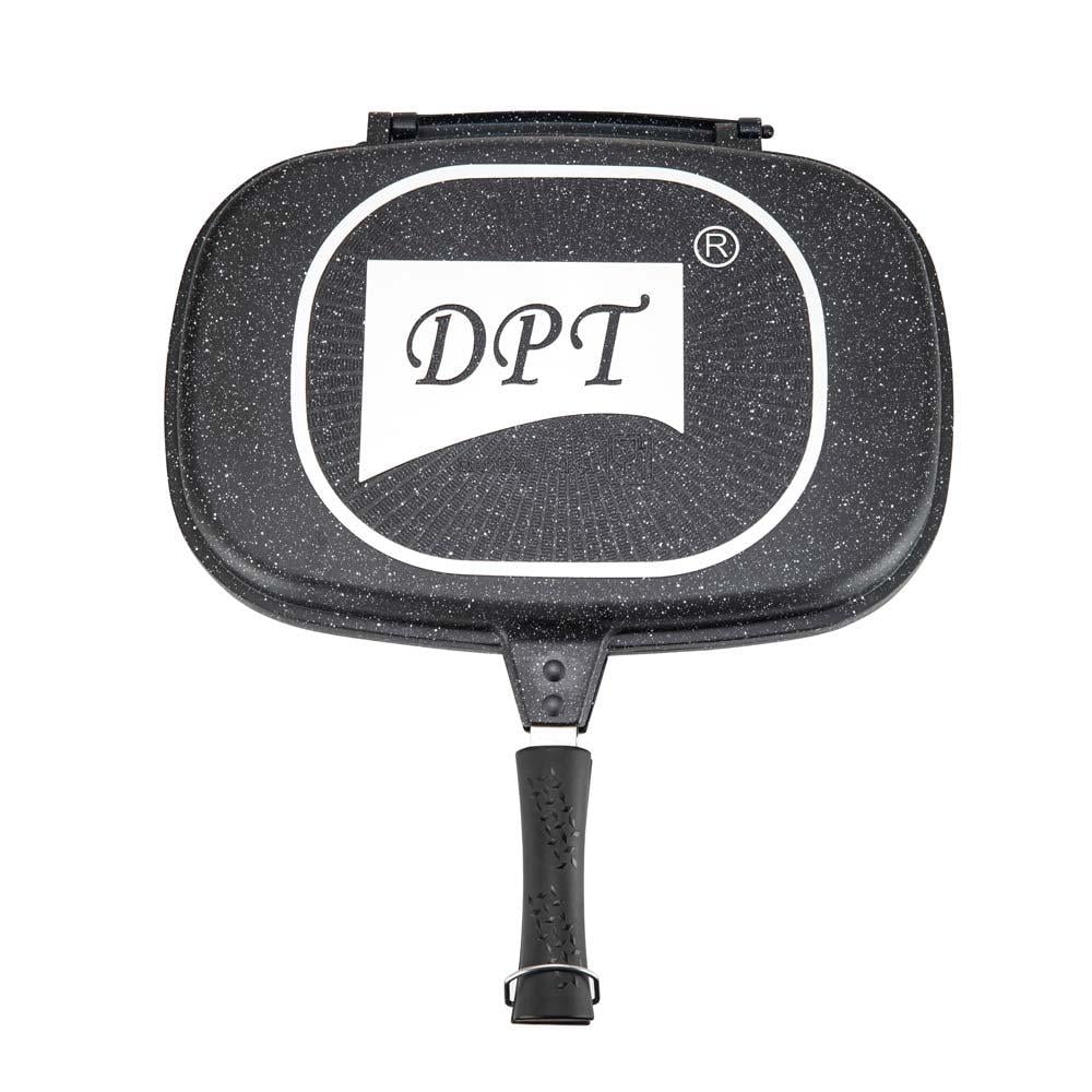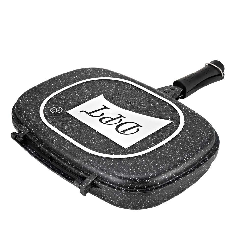 مقلاة طبخ مزدوجة من دي بي تي اسود بطبقة سيراميك داخلية غير قابلة للالتصاق مع مقبض - أداة طهي مبتكرة وعالية الجودة بتصميم مزدوج وشواية مدمجة، مطلية بطبقة سيراميك غير لاصقة من الداخل لطهي صحي وسهل 🔥🍳🥩.