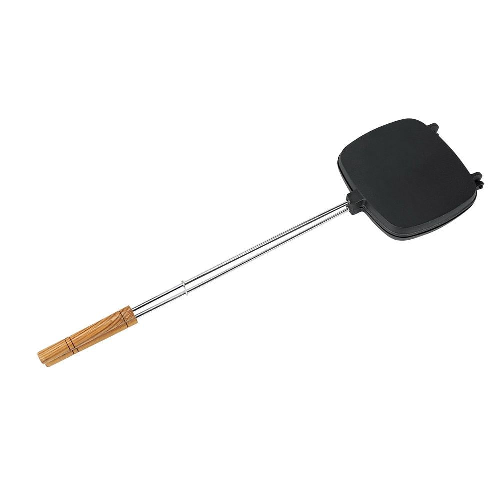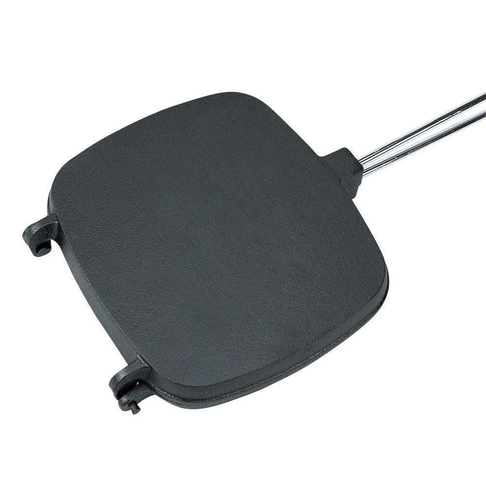 مقلاة شواء مزدوجة زهر حديد مقاس 18 × 20 سم بيد طويلة - أداة شواء متينة وعالية الجودة بتصميم مزدوج من حديد الزهر، مزودة بيد طويلة لسهولة الاستخدام وشواء مثالي للحوم والخضروات