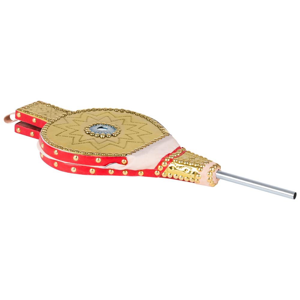 تصميم أنيق ومميز: يتكون المنفاخ من طبقتين من الخشب على شكل فكين مع أنبوب مخرج للهواء، مع ممسكين لليد من الخشب مما يتيح سهولة التحكم. كما يتميز بالزخارف الدقيقة والمرايا والمسامير النحاسية التي تضيف لمسة فنية رائعة.
