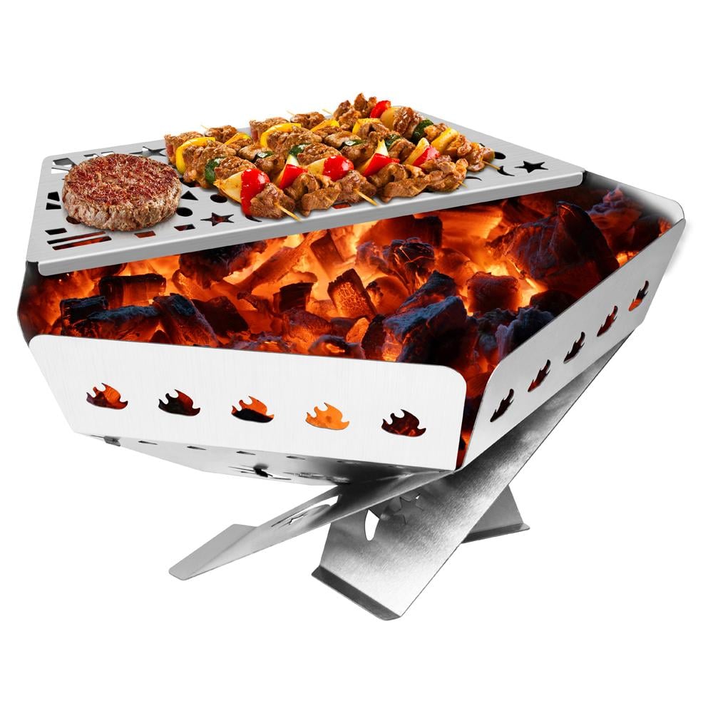 الشواء في الأماكن المختلفة: حجمه المناسب وخفة وزنه وسهولة طيه وحمله يجعله مثاليًا للنزهات والرحلات والشواء في الهواء الطلق.