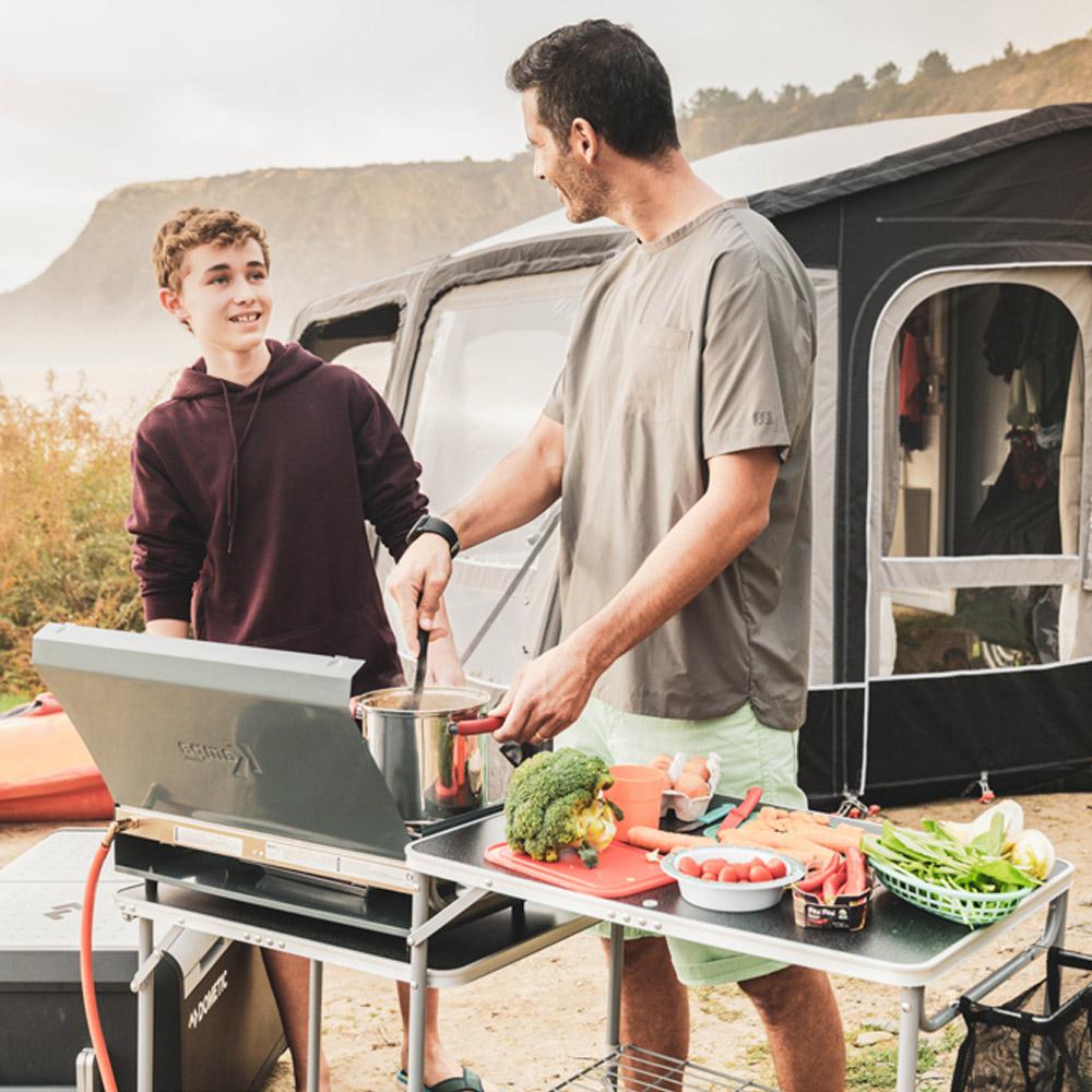 اجمع بين الأداء العالي والتصميم العملي مع وحدة أرفف Kampa متعددة الاستخدامات، خيار مثالي للتخييم، الطبخ الميداني وتنظيم الأغراض. توفر لك حلاً كاملاً بفضل الطاولة الجانبية، الرفوف الداخلية، وسهولة التركيب والنقل.