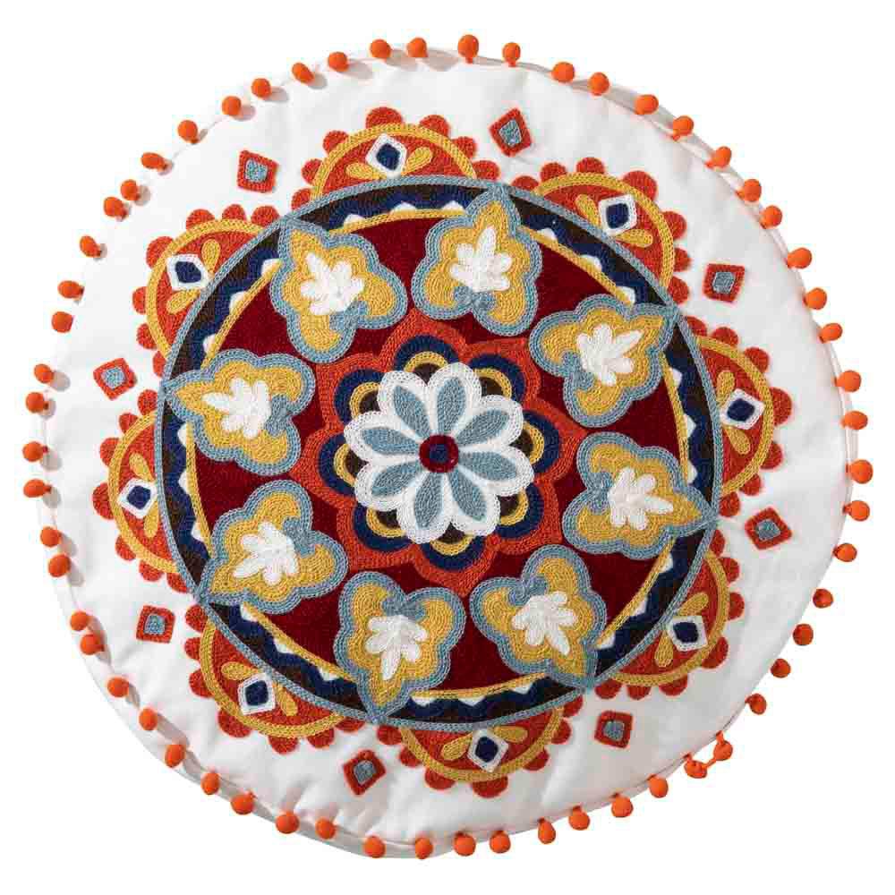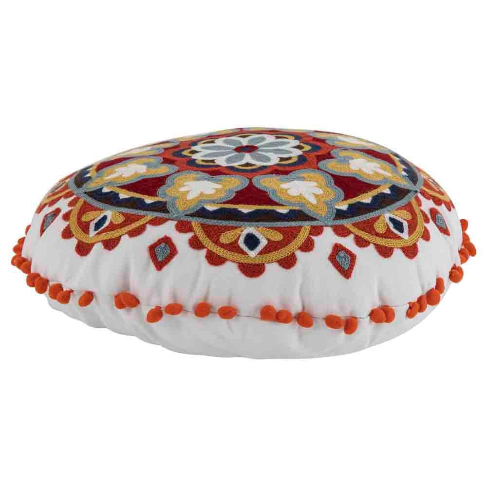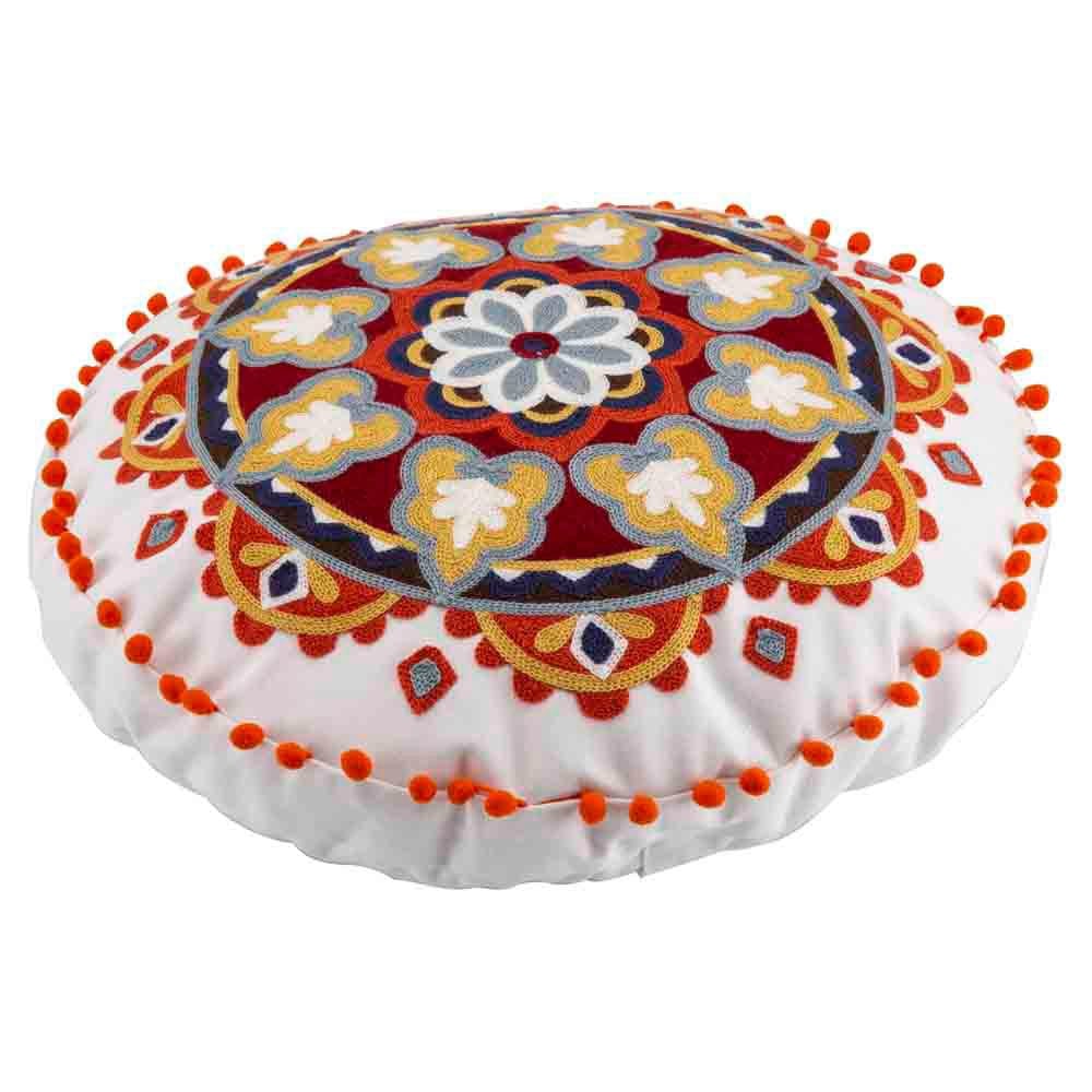 وسادة أرضية مريحة – نقش تراثي أبيض – قماش كانفاس