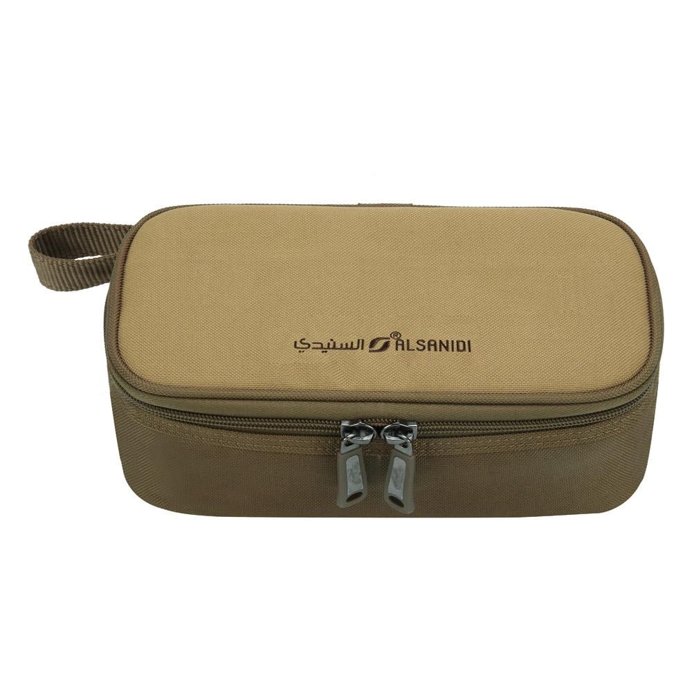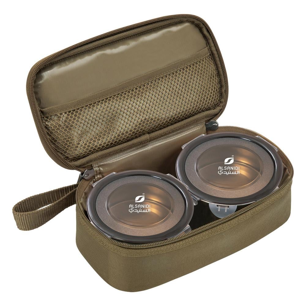 شنطة حوافظ أطعمة مكتملة دائرية ستانليس ستيل من السنيدي توفر لك طريقة آمنة لحفظ الأطعمة في رحلاتك ومغامراتك. مصممة خصيصًا لتحمل الأجواء الصحراوية والرملية، وتتميز بمادة عازلة للماء ومواد متينة للحفاظ على الطعام طازجًا.