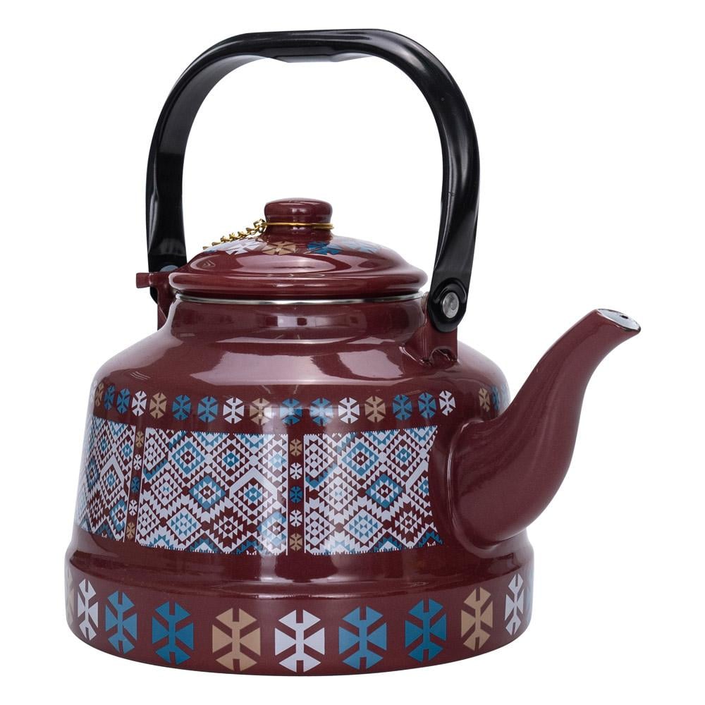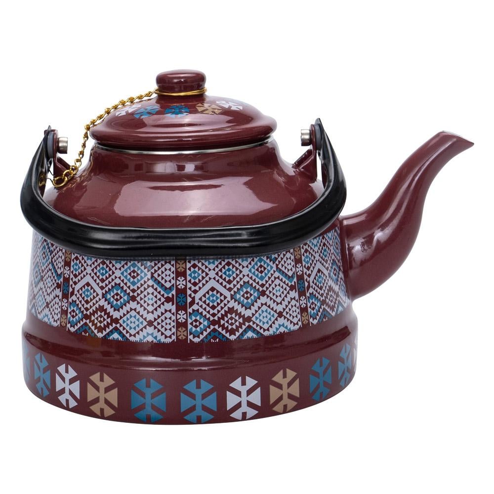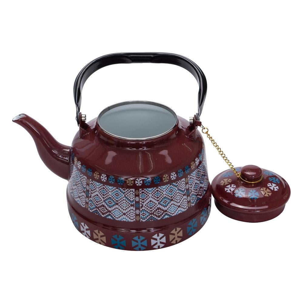 ابريق شاي غضار نقش تراثي 2.5 لتر - متين وسهل التنظيف، سهل الحمل، تصميم أنيق وجذاب،ضمان سنتان