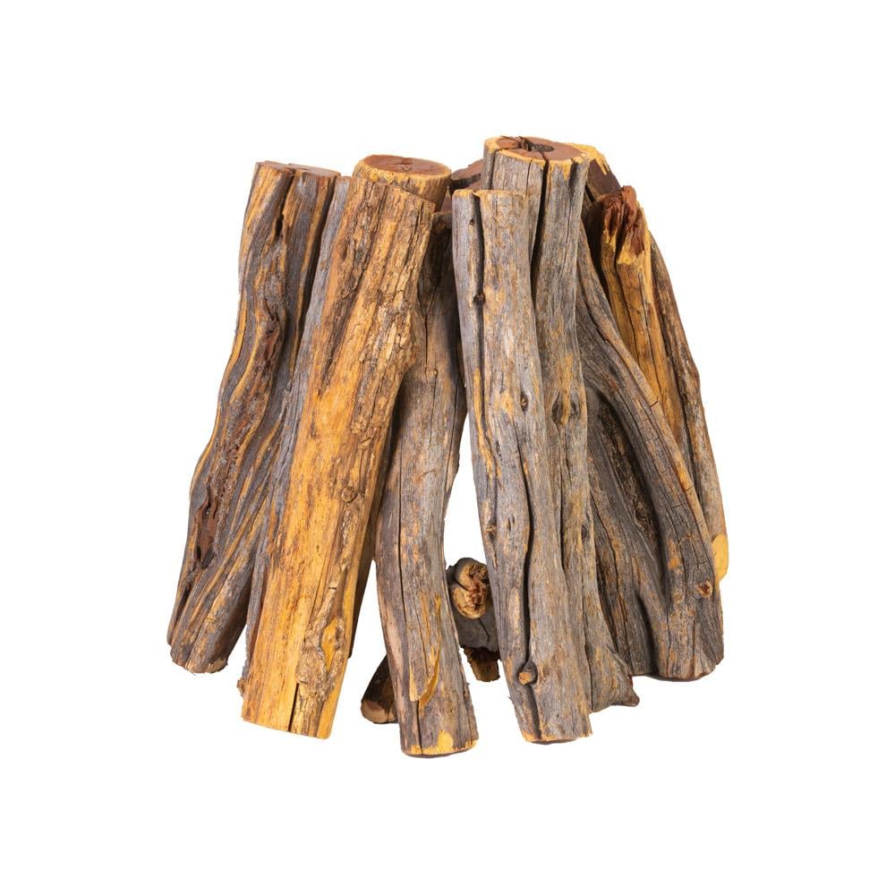نوع ممتاز: حطب كاميلدورنرغ (Acacia erioloba)، المعروف بكثافته العالية واحتراقه الممتاز.