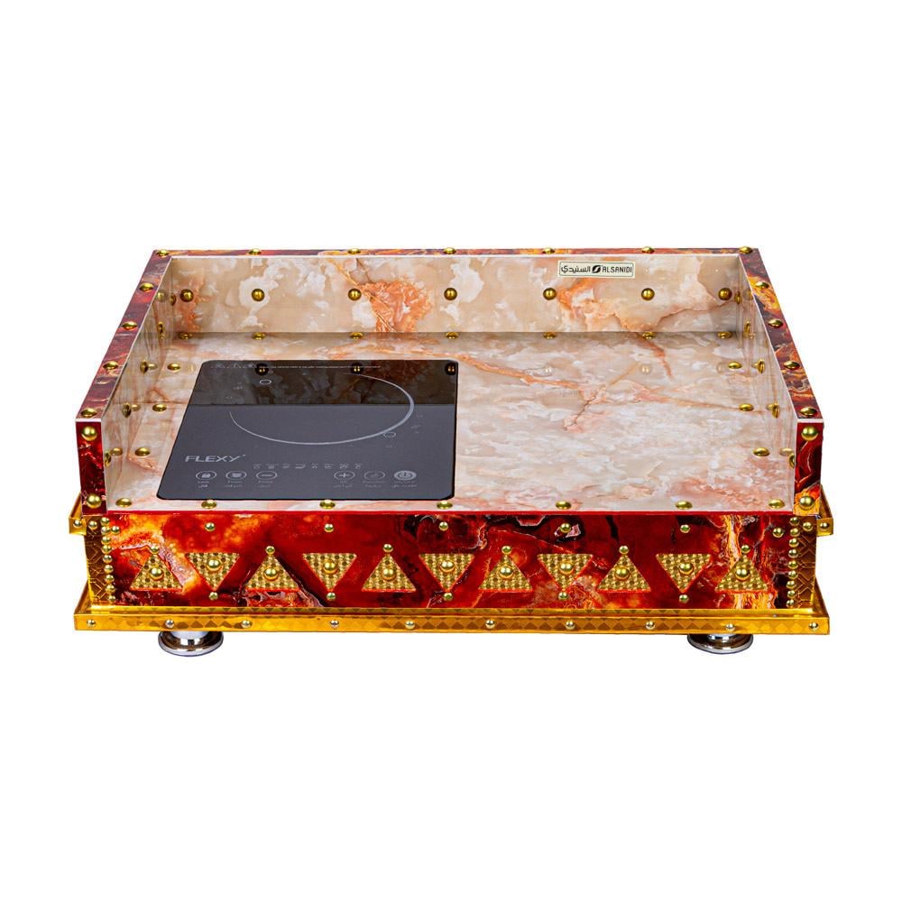 منقل خشب تراثي وطني أحمر بمقاس عملي 75 × 55 سم مزود بعين تسخين واحدة، يجمع بين الحرفية العالية والتصميم الفاخر ليمنحك قطعة تراثية متينة وأنيقة تناسب جميع المساحات.