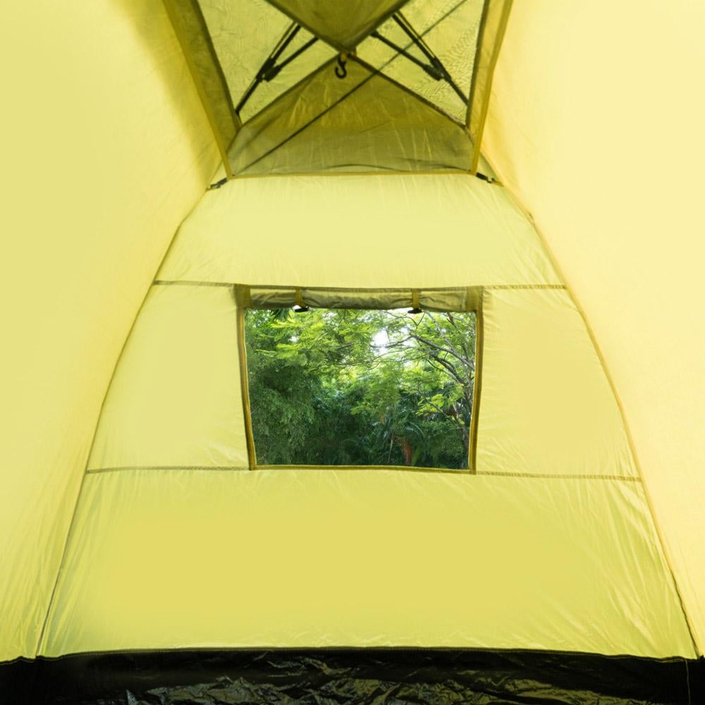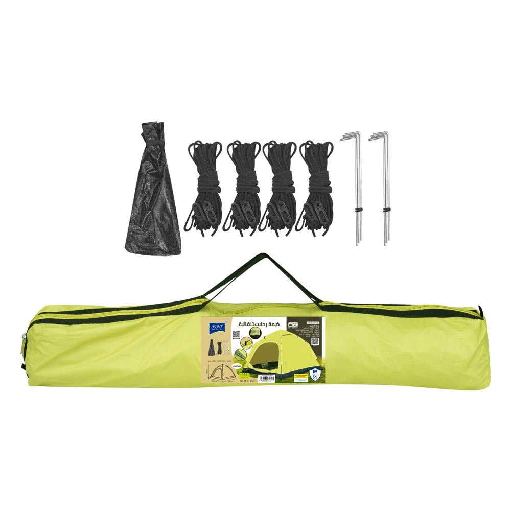 The DBT Yellow Automatic Hiking Tent, made of high-quality polyester fabric, offers a practical and lightweight design with high resistance to external elements.