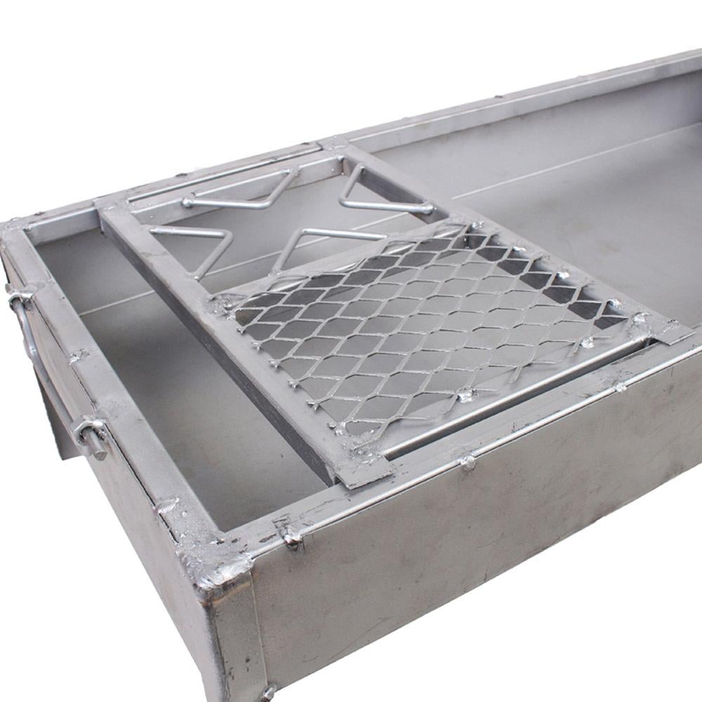 This upgraded charcoal grill with a movable grate features a large size, making it ideal for large family barbecues and use on trips and camping trips. It features an improved design for even heat distribution to ensure perfect grilling, and a movable grate for easy use and cleaning. It is made of high-quality materials to withstand high temperatures and intensive grilling.