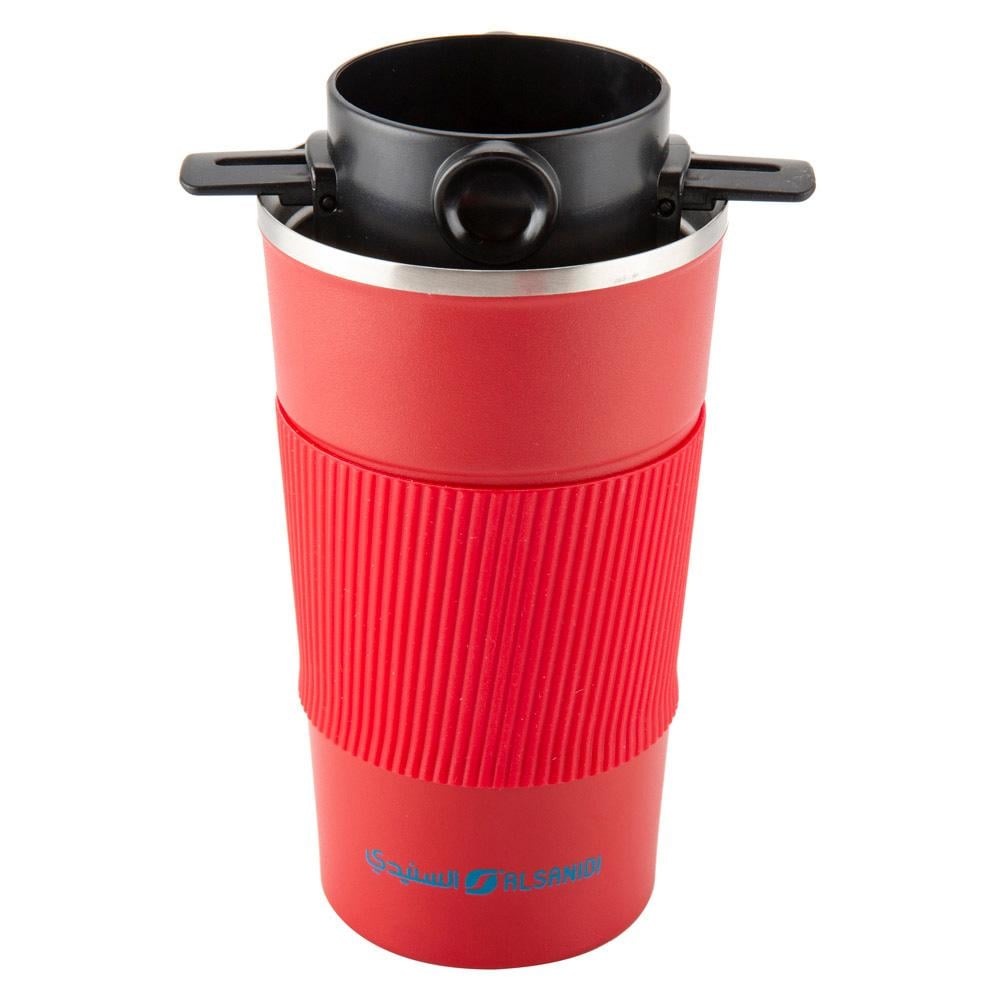 An innovative mug that combines the durability of stainless steel with a practical design with a built-in filter and separate cup, ideal for preparing coffee on the go and during trips.