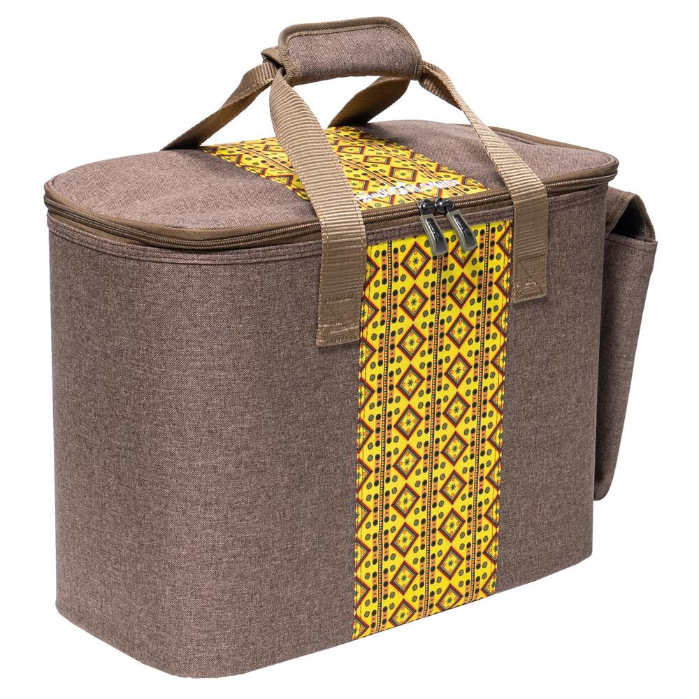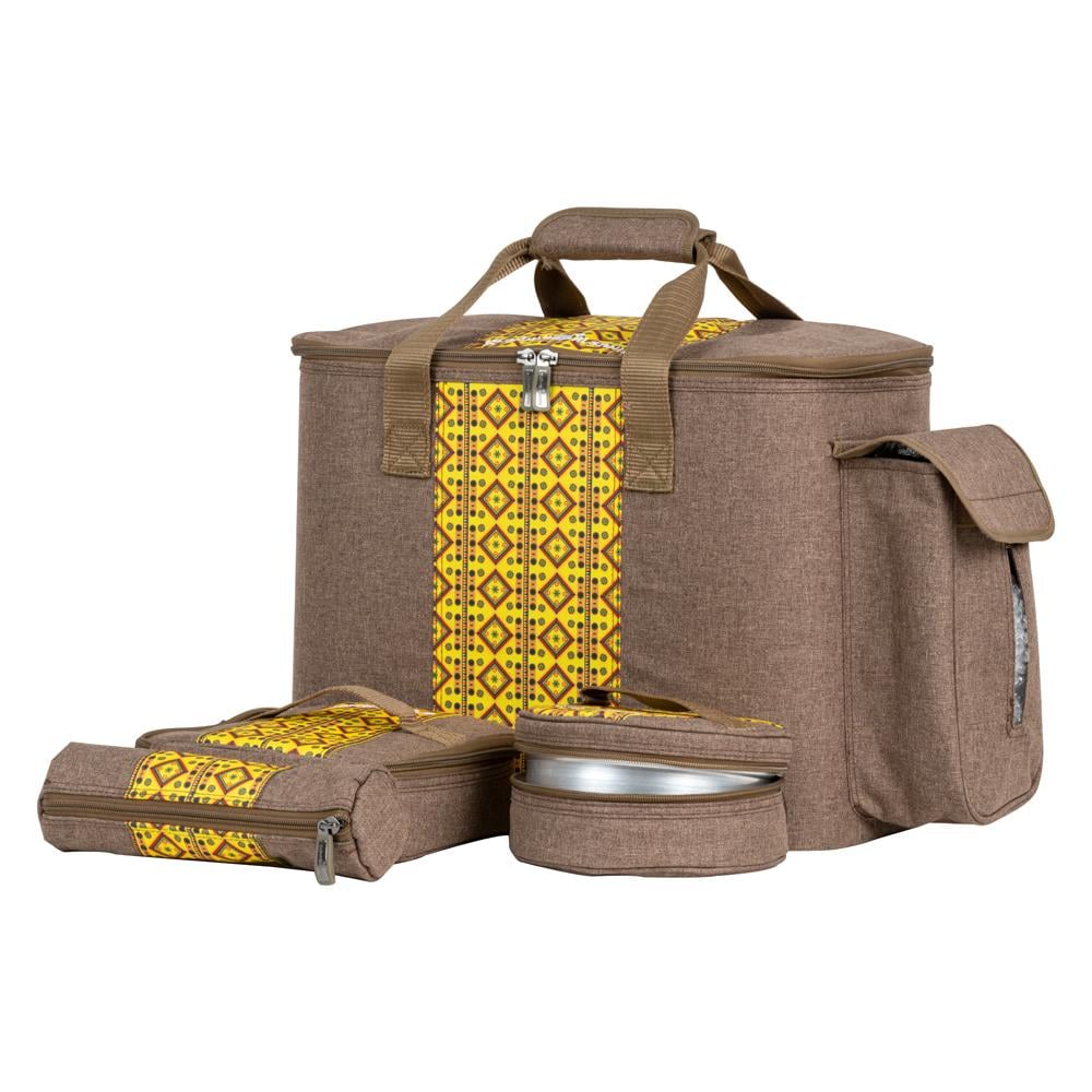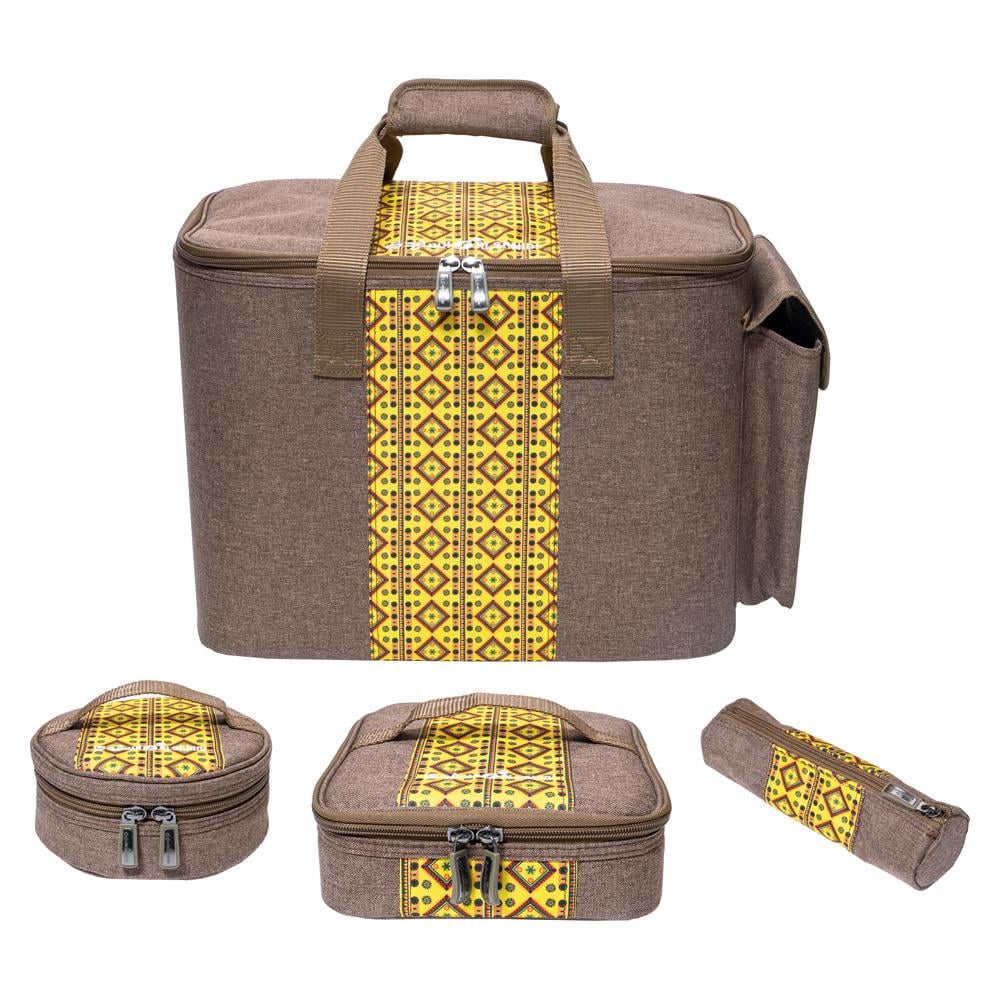 Al-Sunaidi Travel Thermos Bag for Hiking and Travel | 5 Pieces, Wooden with Yellow Najdi Engraving