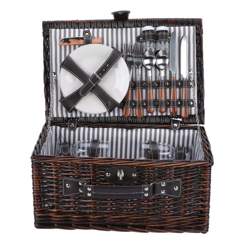 24-Piece Rattan Picnic Set - Provides all essential dining tools, easy to carry, suitable for families