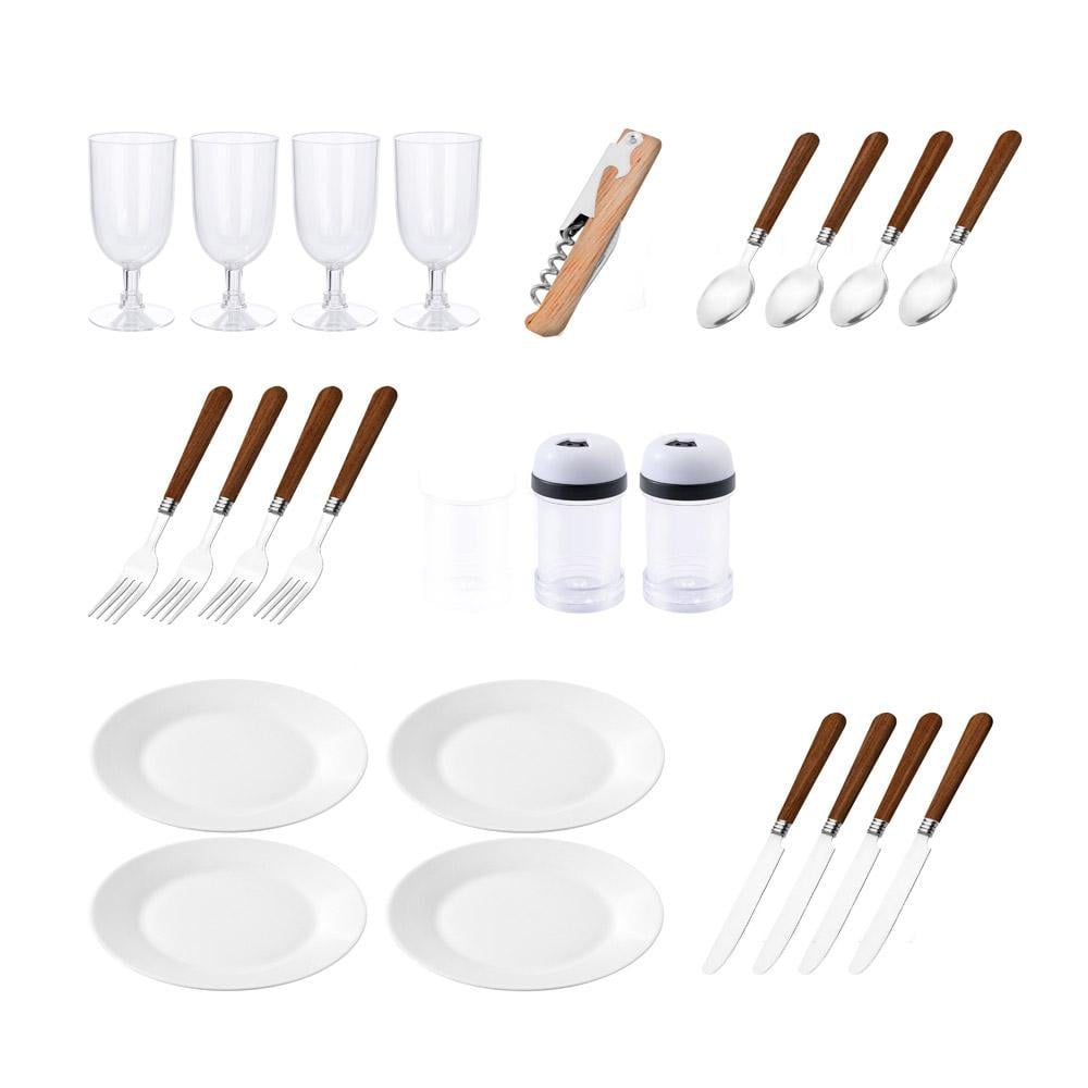 • 4 sets of knives, 4 forks, and 4 spoons made of stainless steel