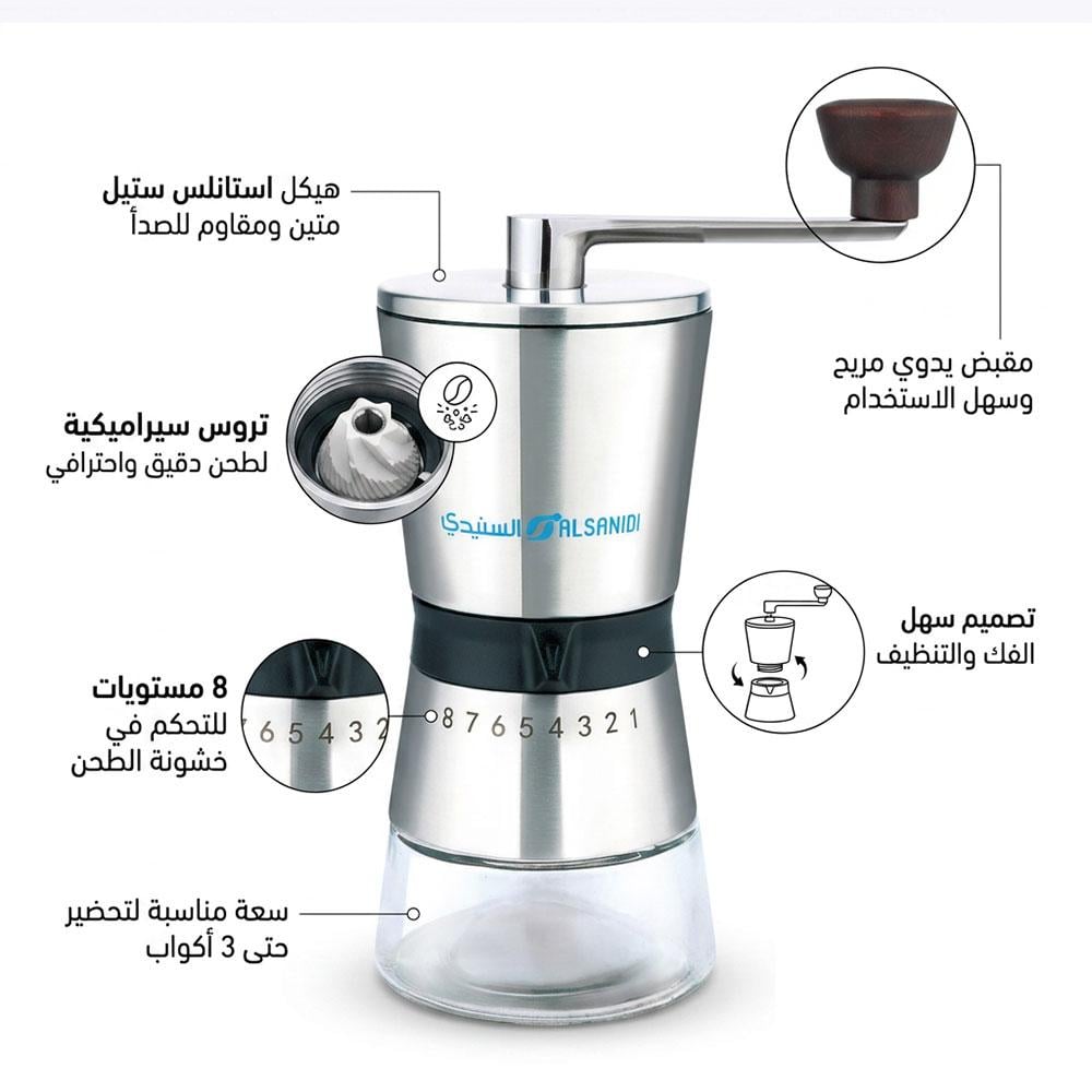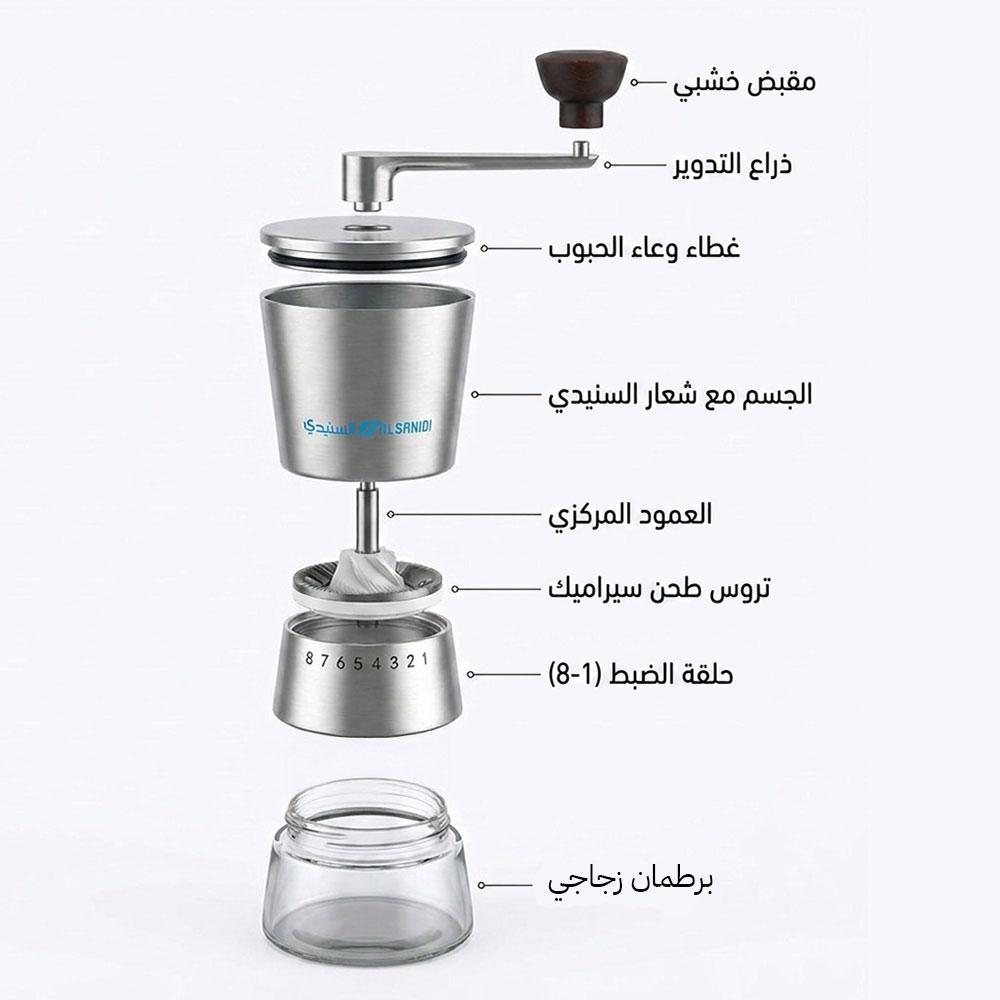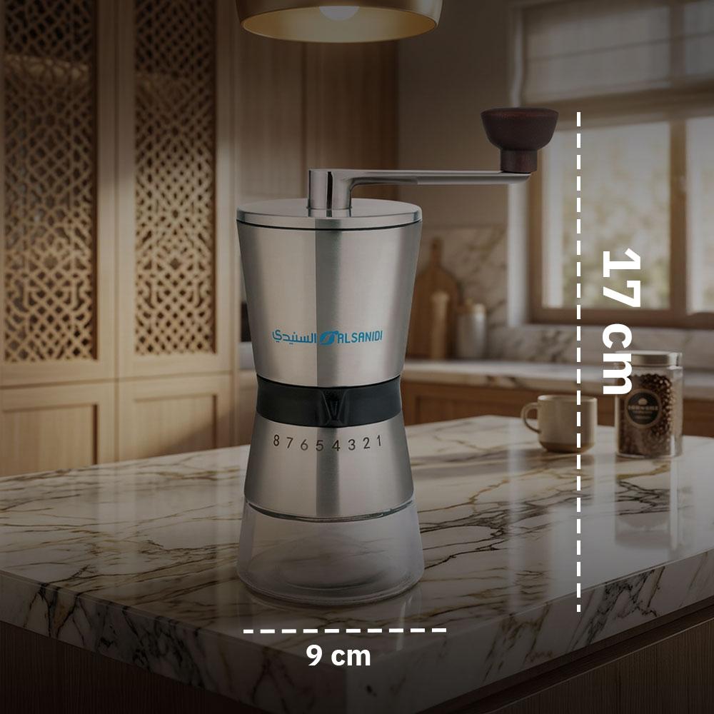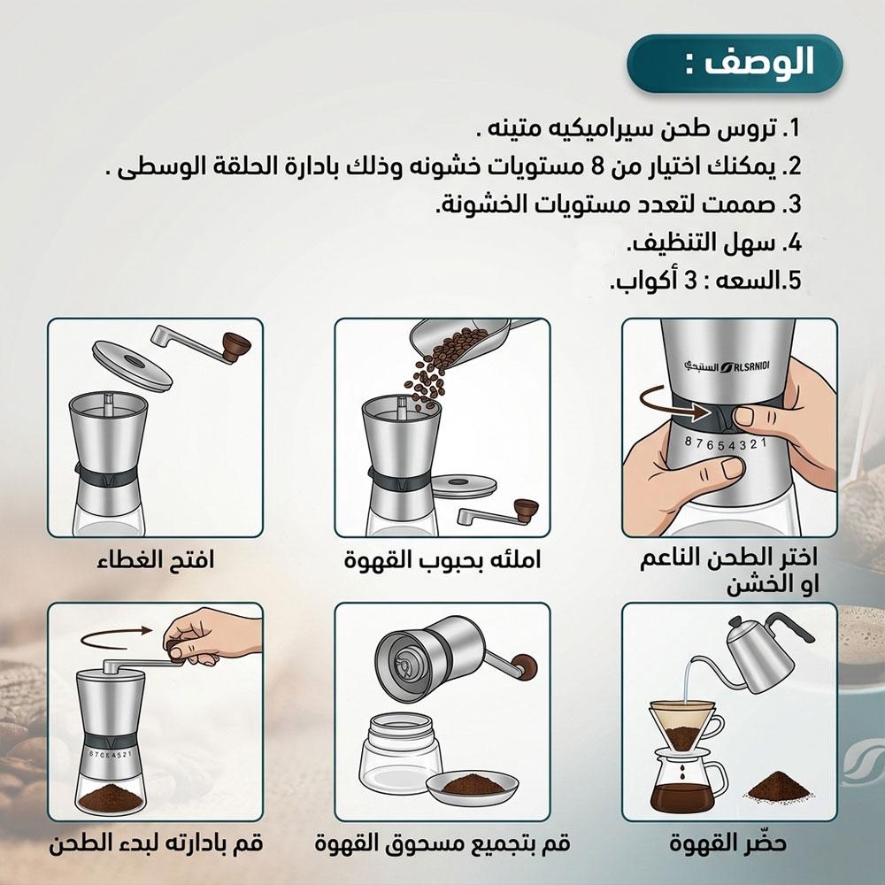 **Keywords: ** coffee grinder, stainless steel coffee grinder, ceramic gears, coarseness levels, fine coffee grinder, coarse coffee grinder, coffee tools.
