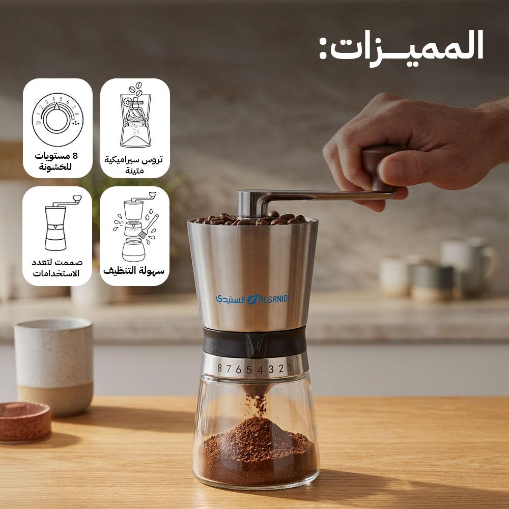 * **To prepare different types of coffee: ** You can use the grinder to prepare French coffee, espresso, and many other types of coffee.
