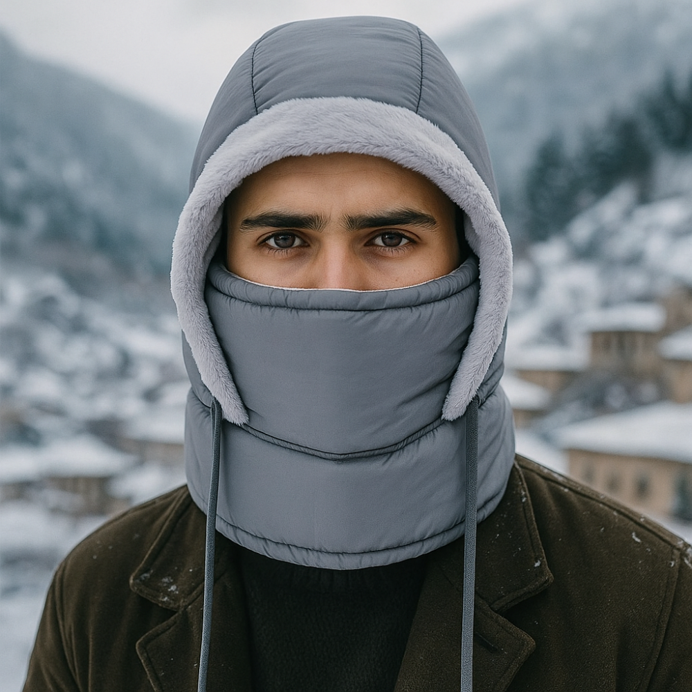 * Design covers a head circumference of 58-60 cm with an extended neck hood and a long front for protection from wind and cold.