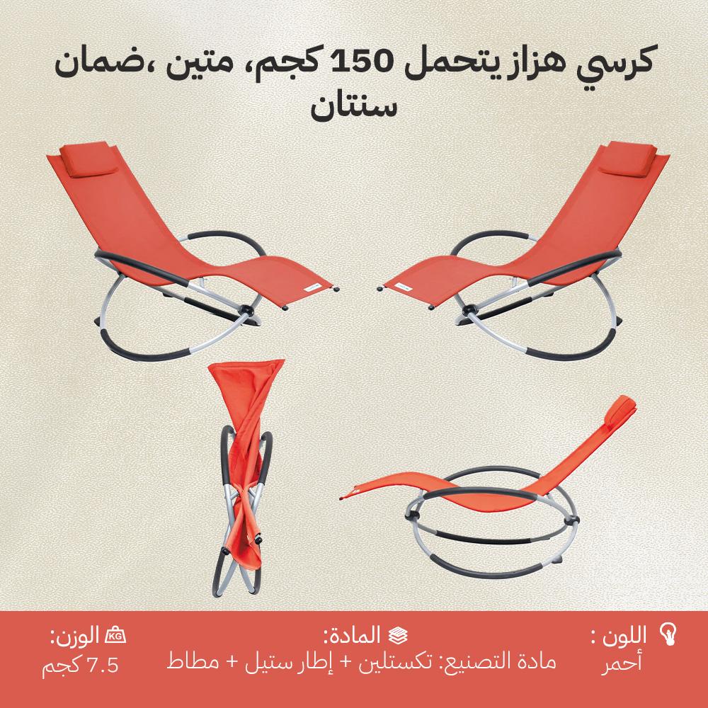 Comfortable and versatile red steel frame rocking chair with textile fabric.